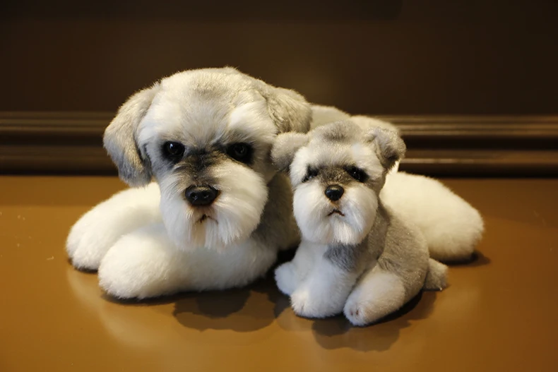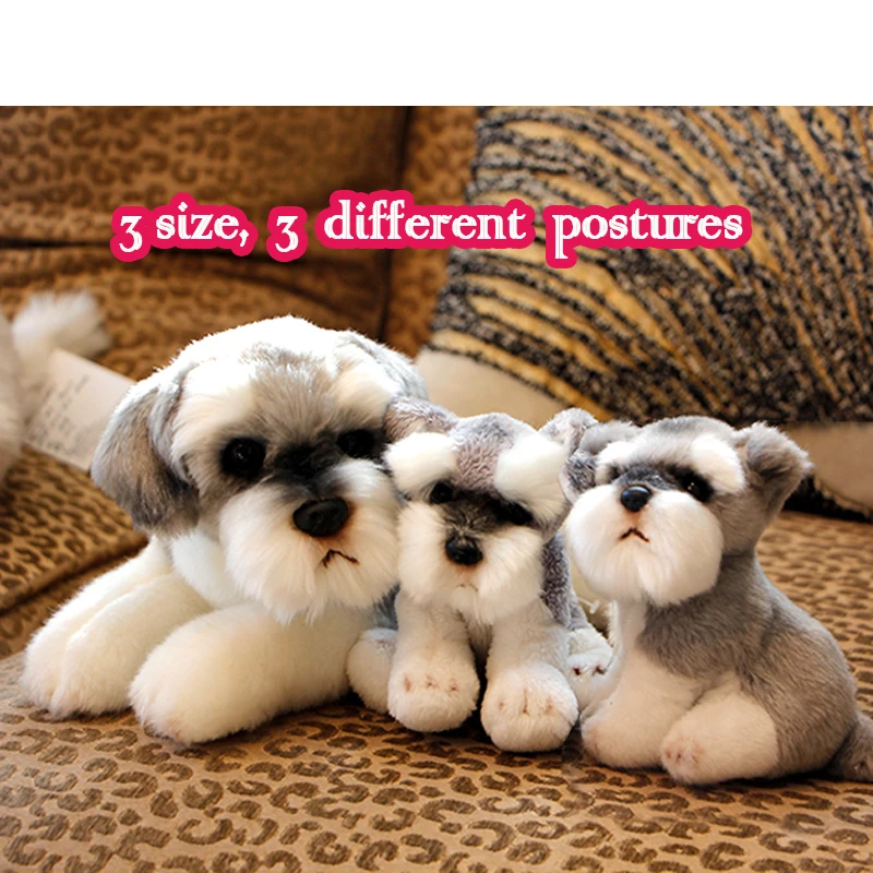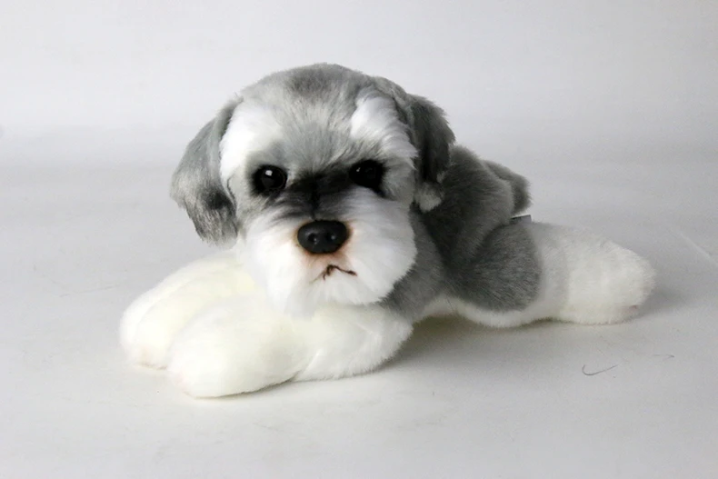 Real Life Plush Toy Schnauzer Dog Stuffed Animal Cute Simulation Dog Toys for Children Photo Props Kids Toys for Girls 5-7 Years Old, Birthday Gift, Dropshipping