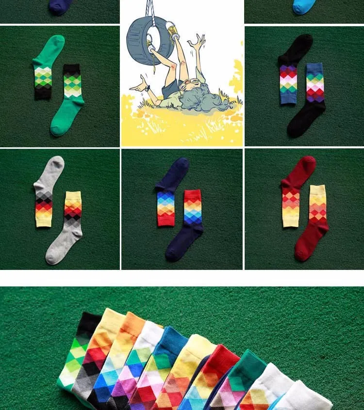 10 Pairs/Lot Men’s socks British Style Plaid calcetines Gradient Color brand elite long cotton for happy men wholesale socks