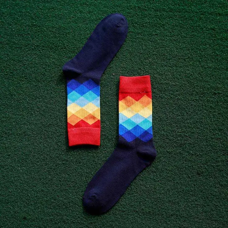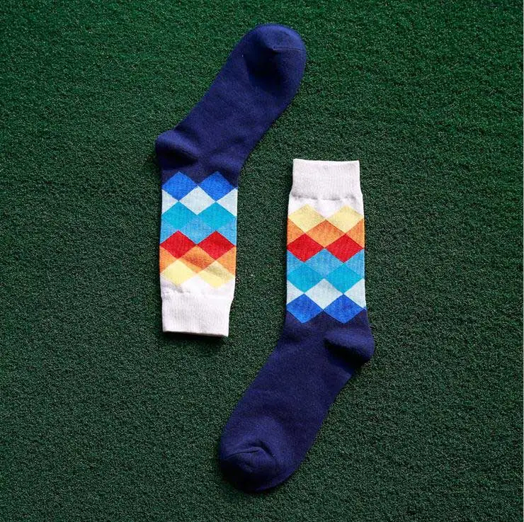 10 Pairs/Lot Men’s socks British Style Plaid calcetines Gradient Color brand elite long cotton for happy men wholesale socks