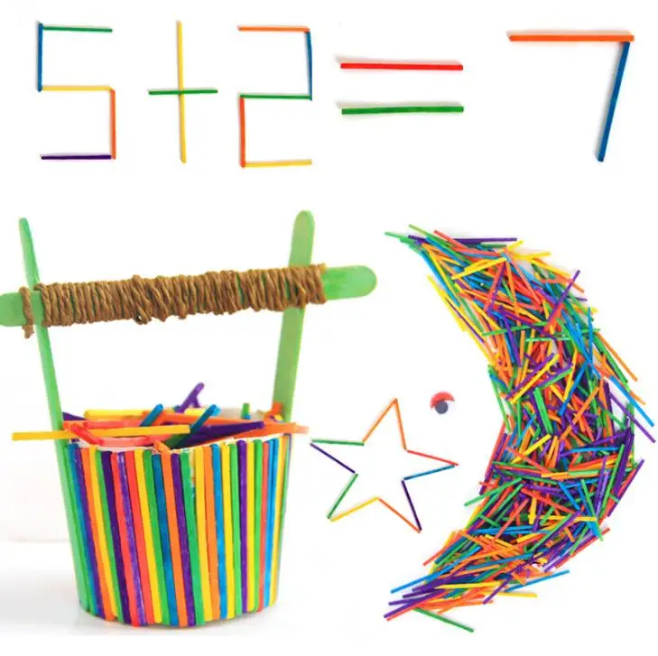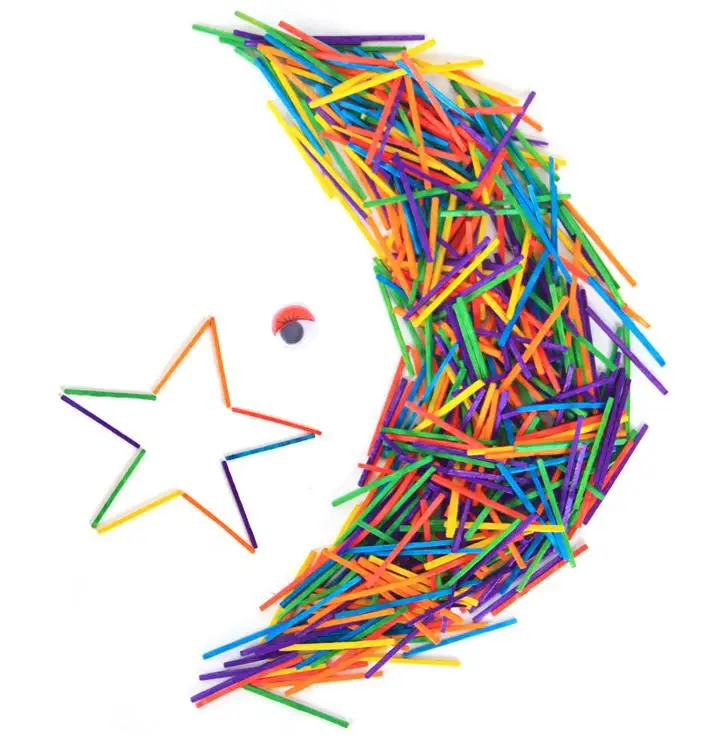 1000 Pcs/pack Colorful Wooden Match Sticks DIY Wood Craft Puzzle Model Children Intelligence Educational Toys Gifts