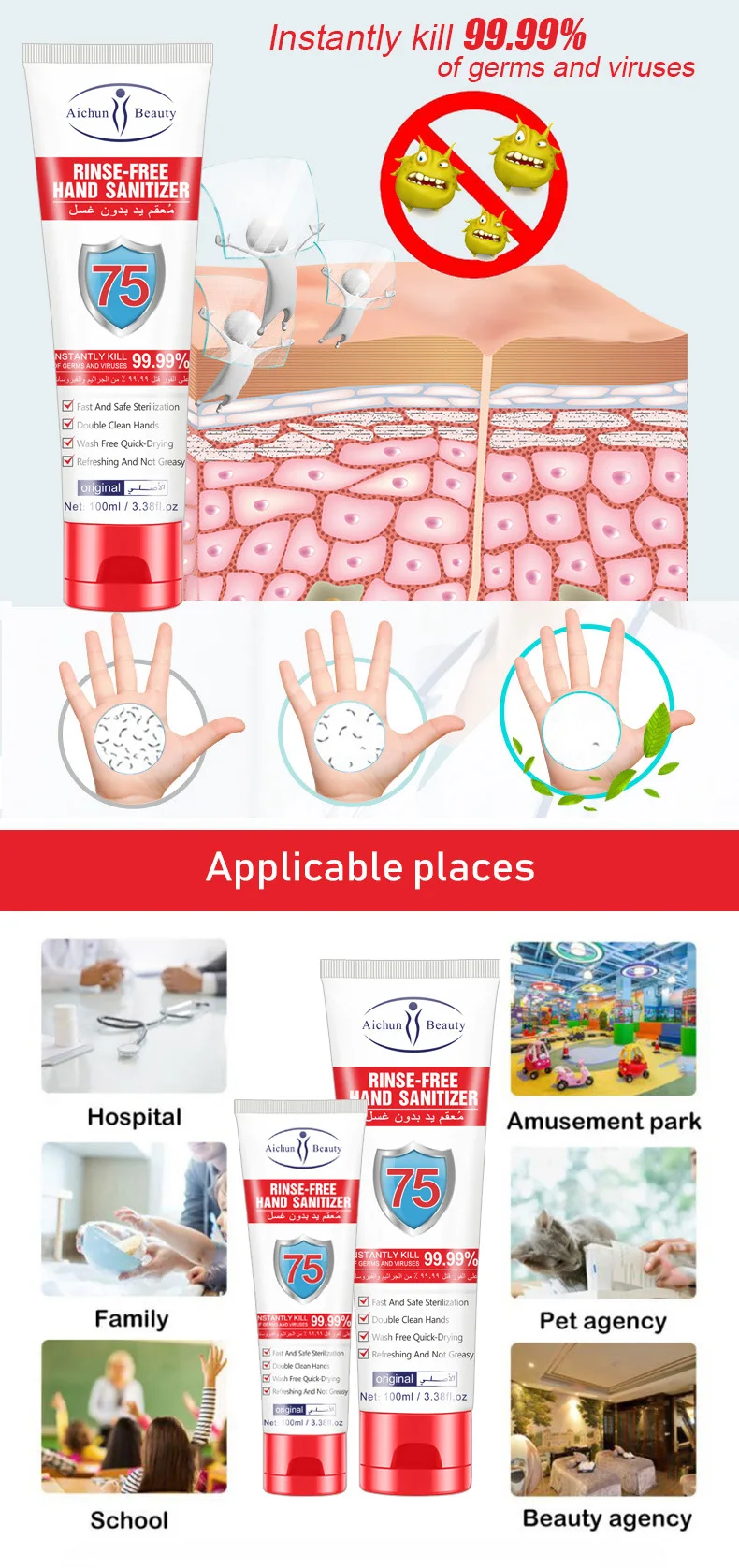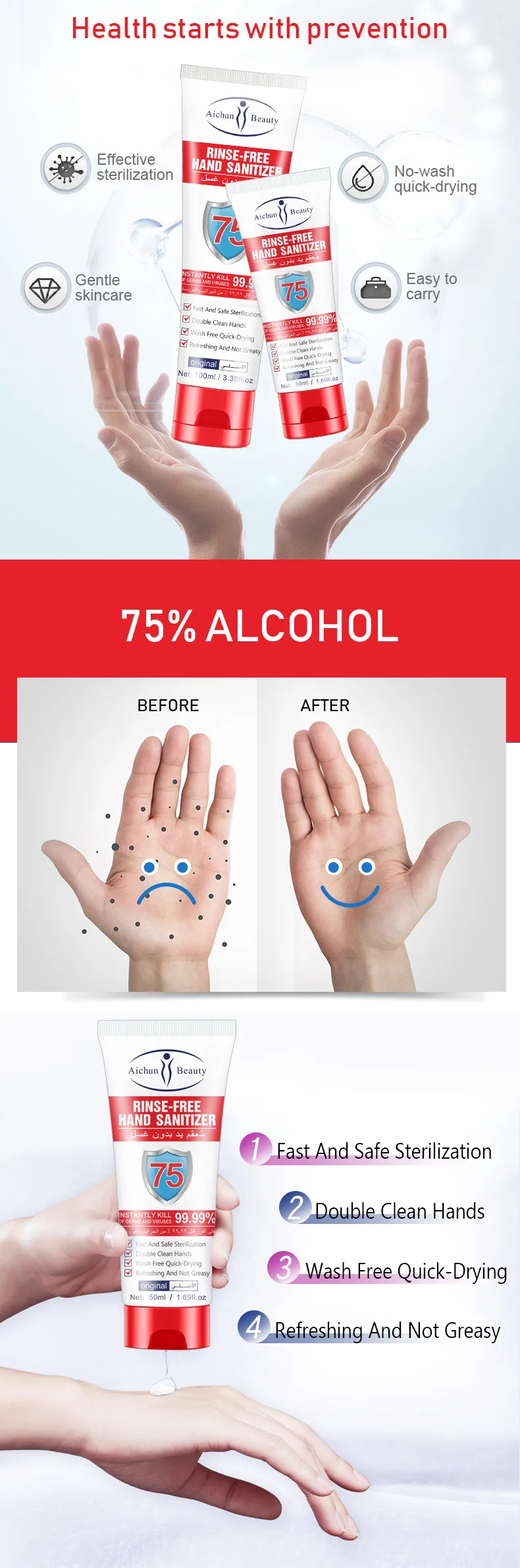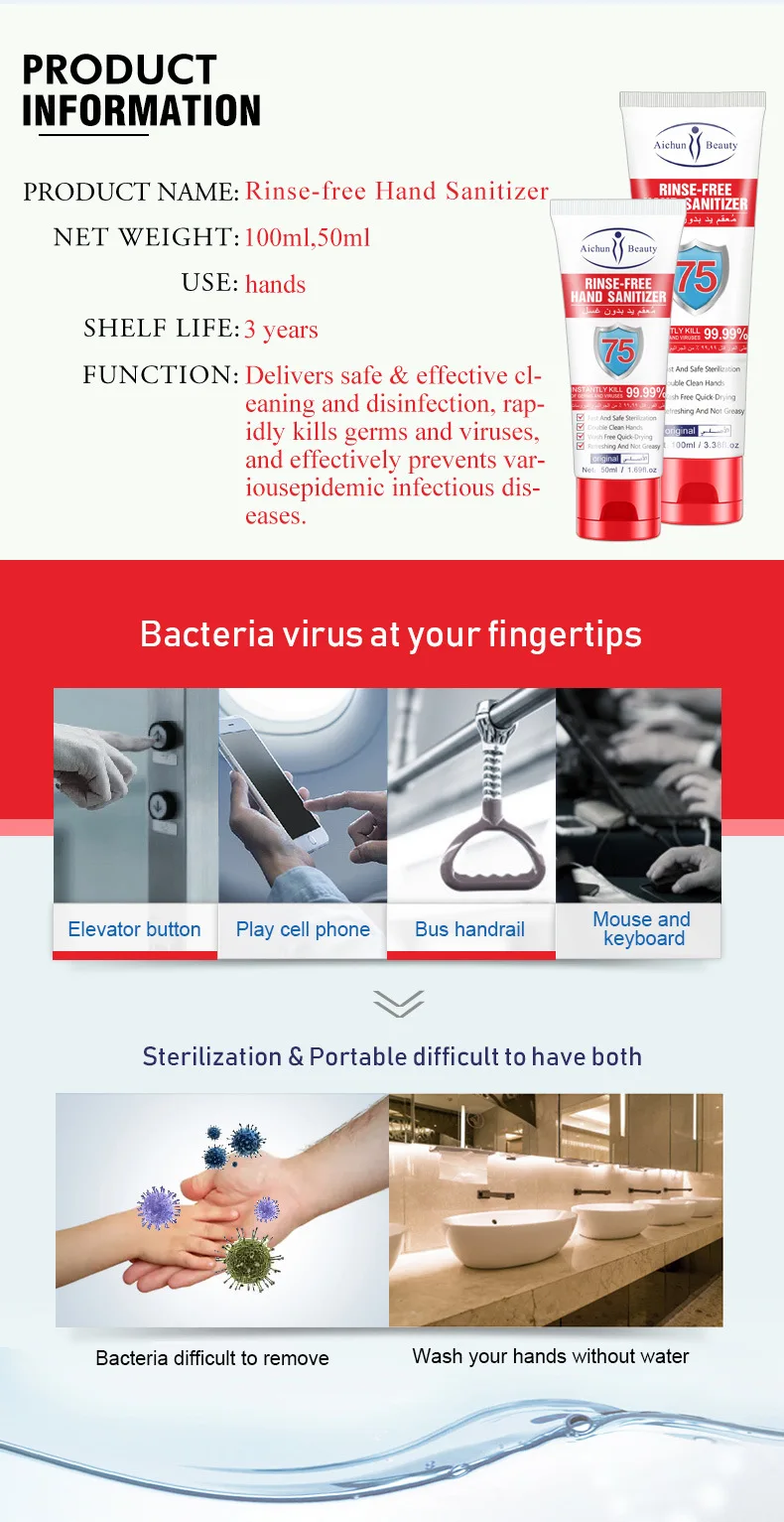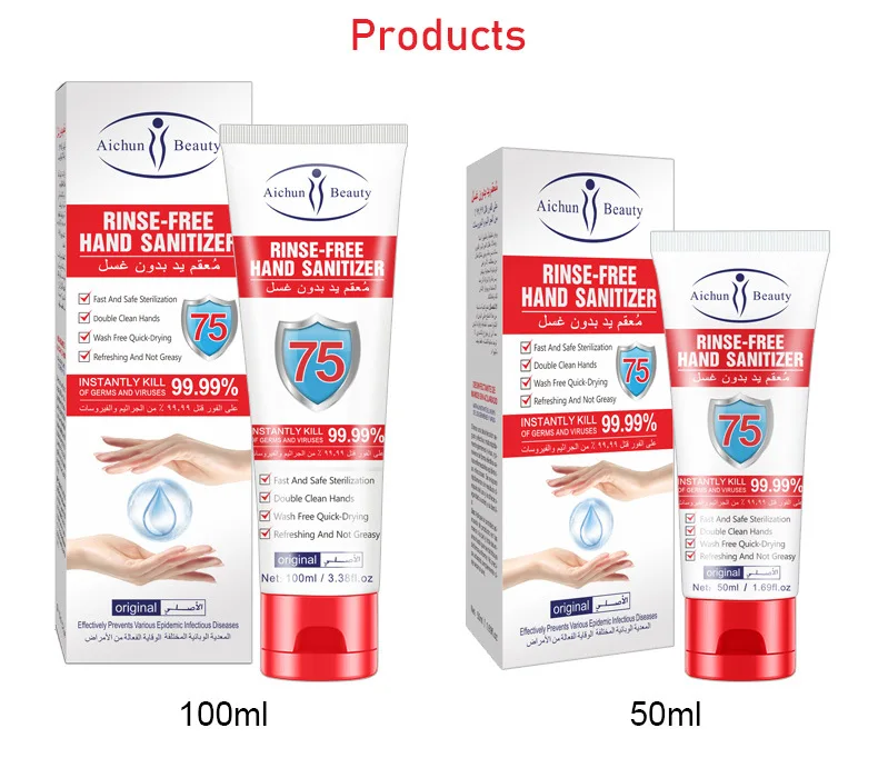 100ml Disposable Hand Sanitizer 75% Alcohol Sterilization Bactericide Antibacterial Disinfection Gel Personal Cleaning Hot Sale