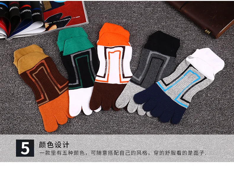 10pcs = 5 pairs Men socks fashion new cotton five fingers toe socks Color mosaic Deodorant business casual Europe wild socks