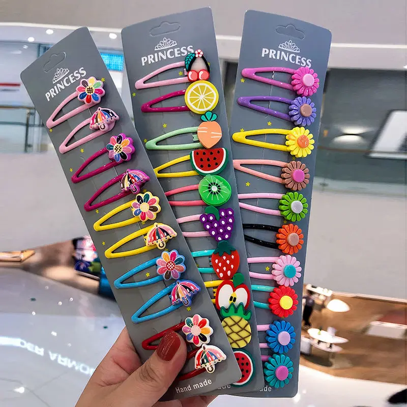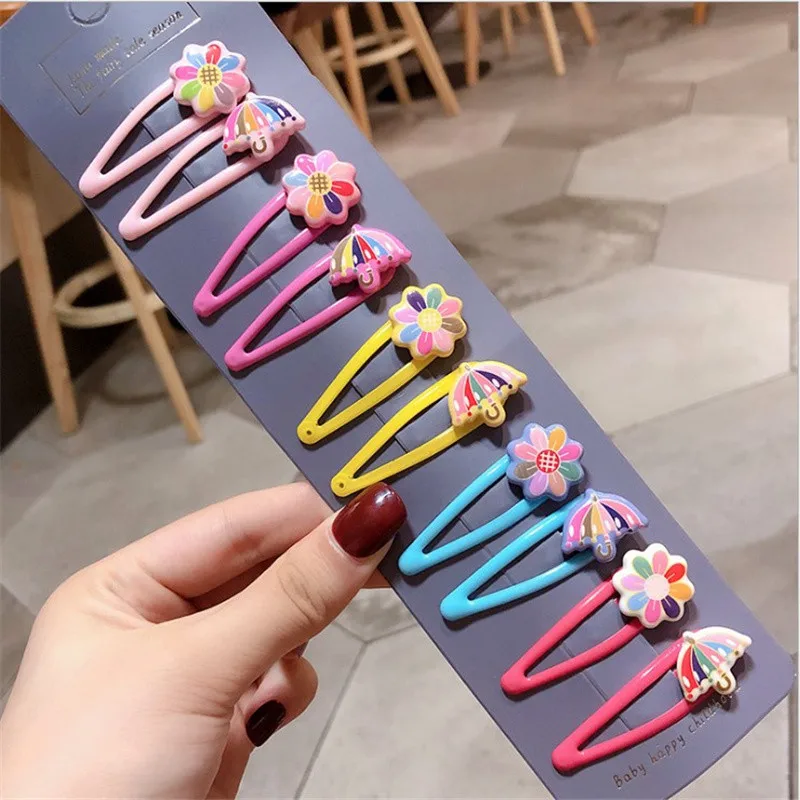 10Pcs/Lot Girls Hair Accessories Imitated Fruit Hairclip Umbrella Barrette Cute Sunflower Headdress Flower Hair Clip For Kids