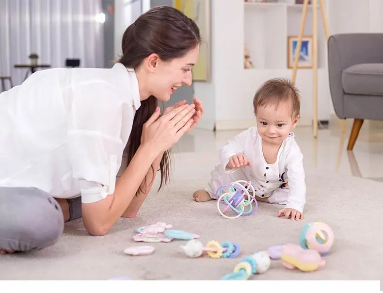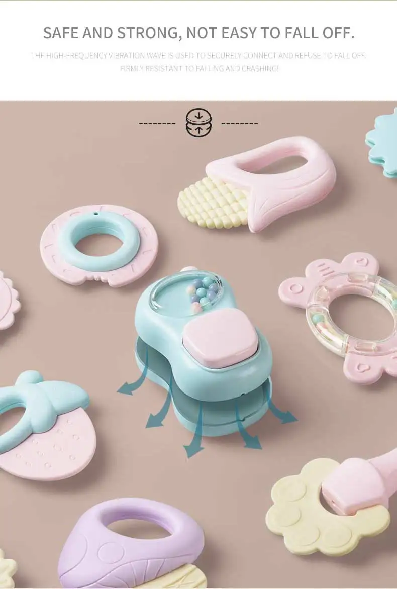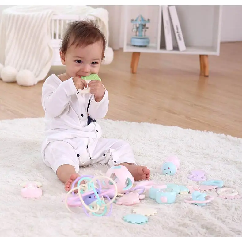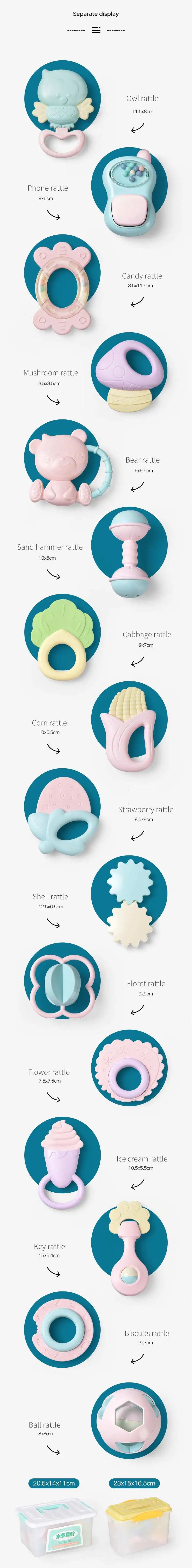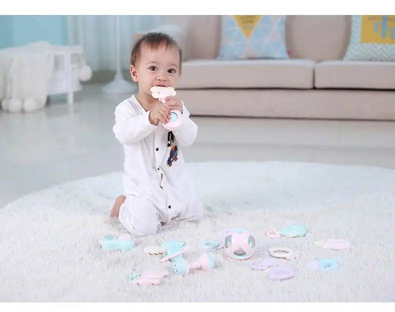 9-11Pcs Crib Baby Rattle 0-12 Months Newborn Bells Teether Baby Soft Hand Shaking Ring Educational Toy For Children Gifts