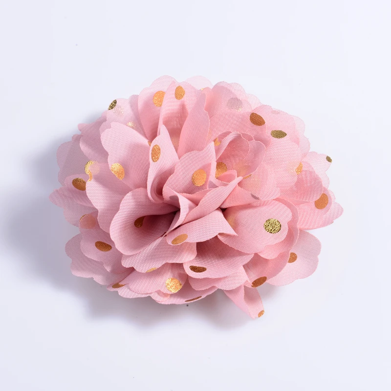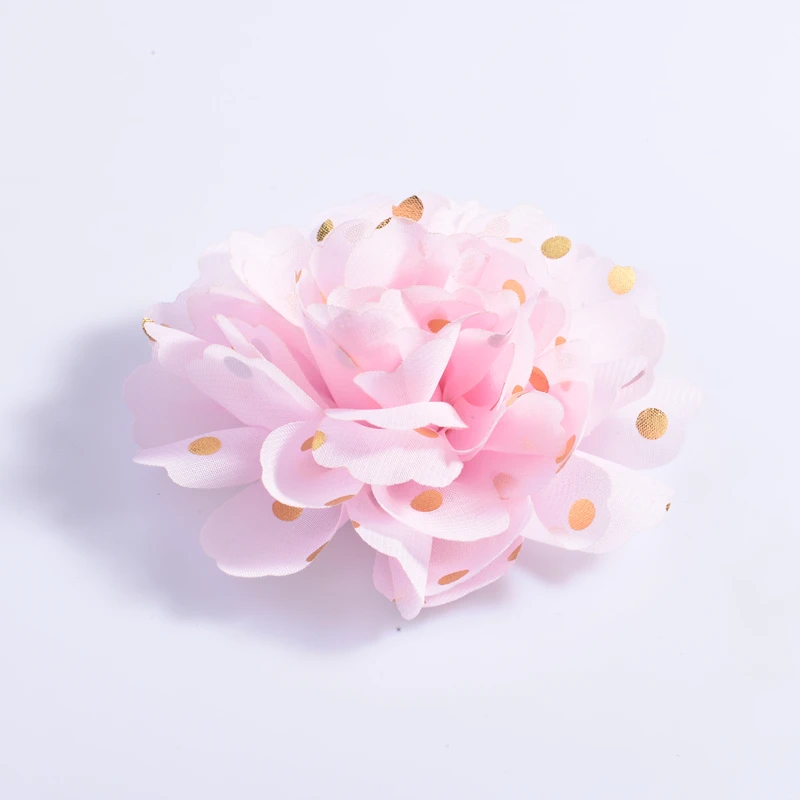 Name: 10cm 24colors Big Chiffon Headband Flower Hair Clips Hairpins Fabric Flowers with Gold Dot for Girls Hair Accessories