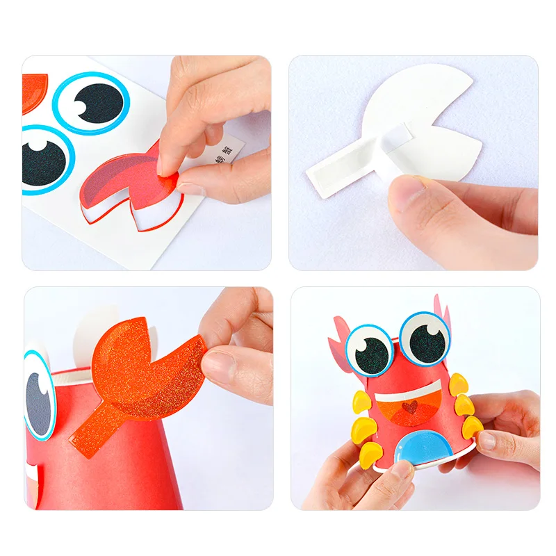 12pcs Children 3D DIY handmade paper cups sticker material kit / Whole set Kids kindergarten school art craft educational toys
