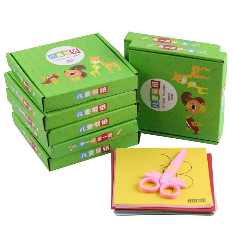 14*14cm Children cartoon paper cutting art with scissors /Kids coloured paper art craft for DIY learning & educational toys