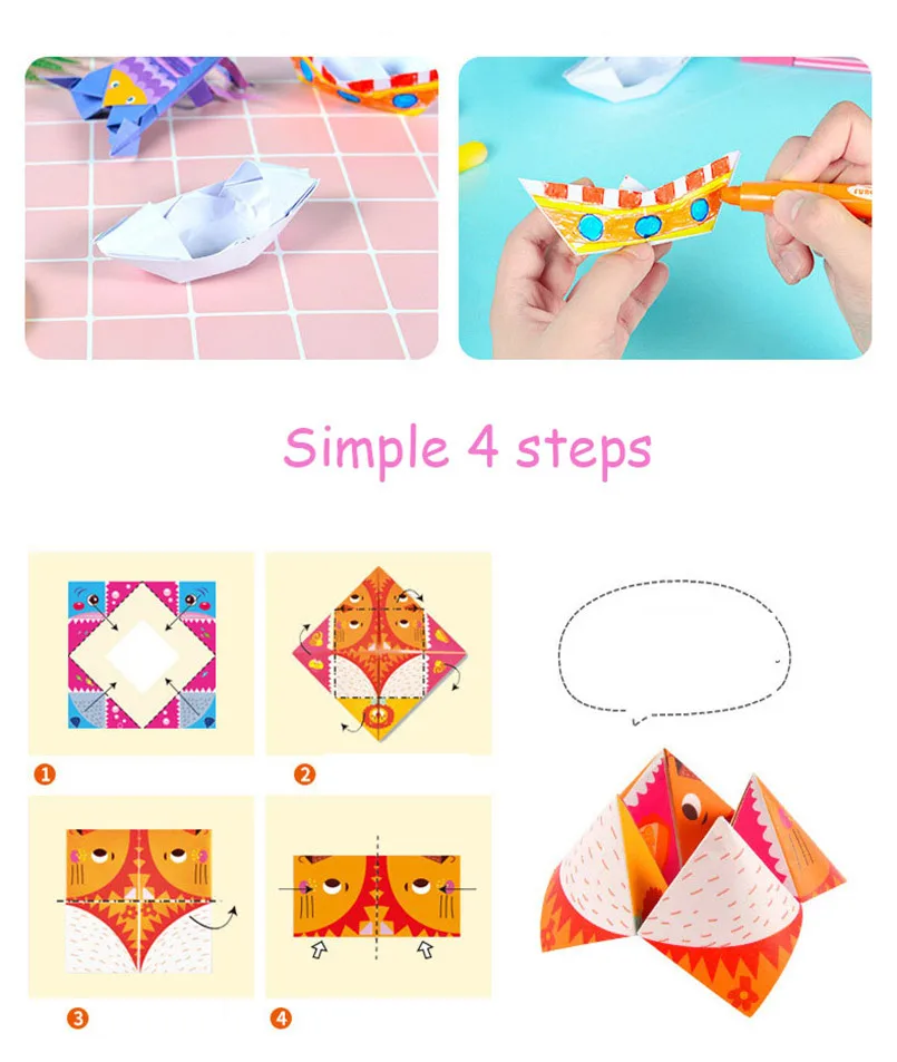 4. Products include: 144pcs colored paper (72 patterns) + 4 pcs blank paper + 1 pc manual