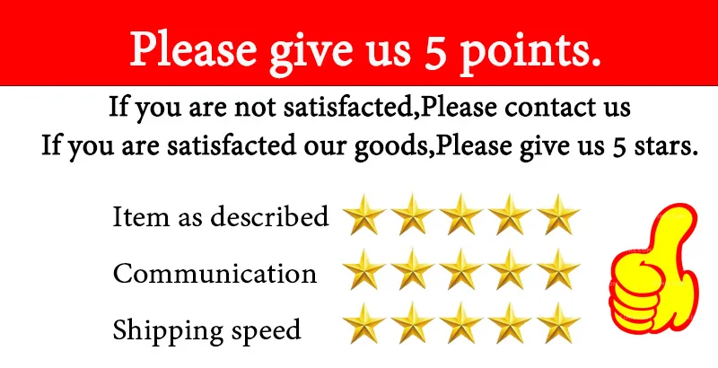 1. If you are satisfied with our products and service, please help to leave “Positive Feedback”and “5 Perfect Stars” for us when you receive your items and we will do the same for you.