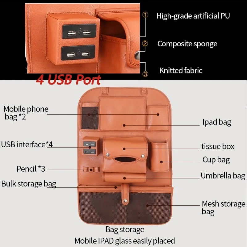 5. Multiple pockets: iPad-designed bags, tissue boxes, cup holders, mesh bags, etc.