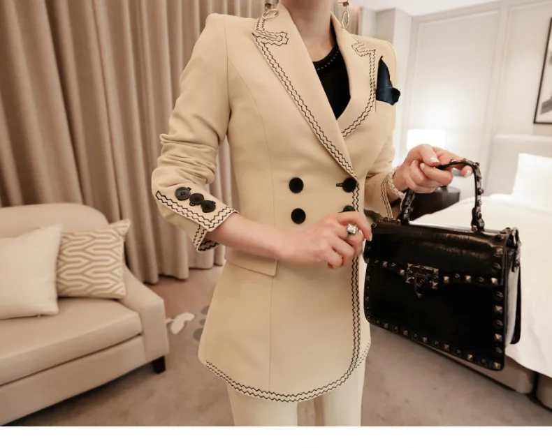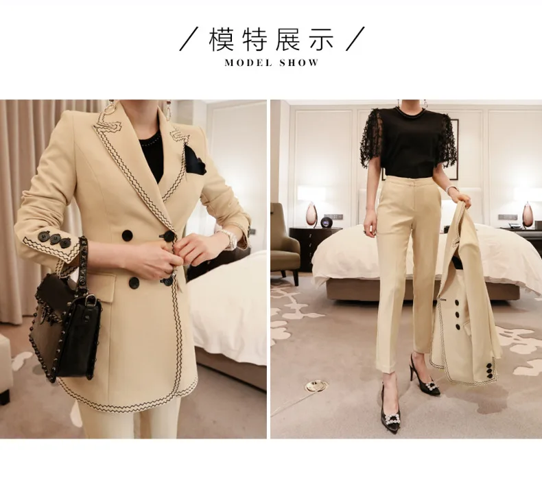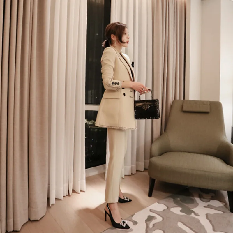 Jacket + Pant Apricot Pant Suits Formal Ladies Office OL Uniform Designs Women elegant Business Work Wear Jacket with Trousers Sets