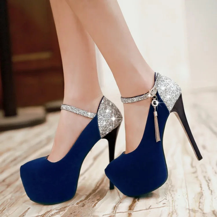 2016 spring women shoes Sexy thin heels high-heeled shoes platform paillette red wedding shoes bride rhinestone big size 43 shoe