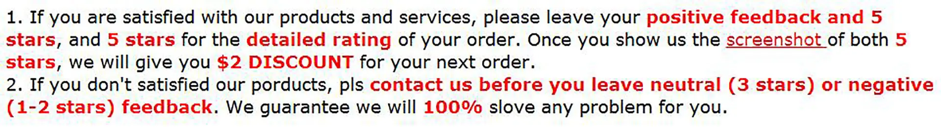 Your satisfaction is our #1 priority. Therefore, you can request a refund or reshipment for ordered products if:
