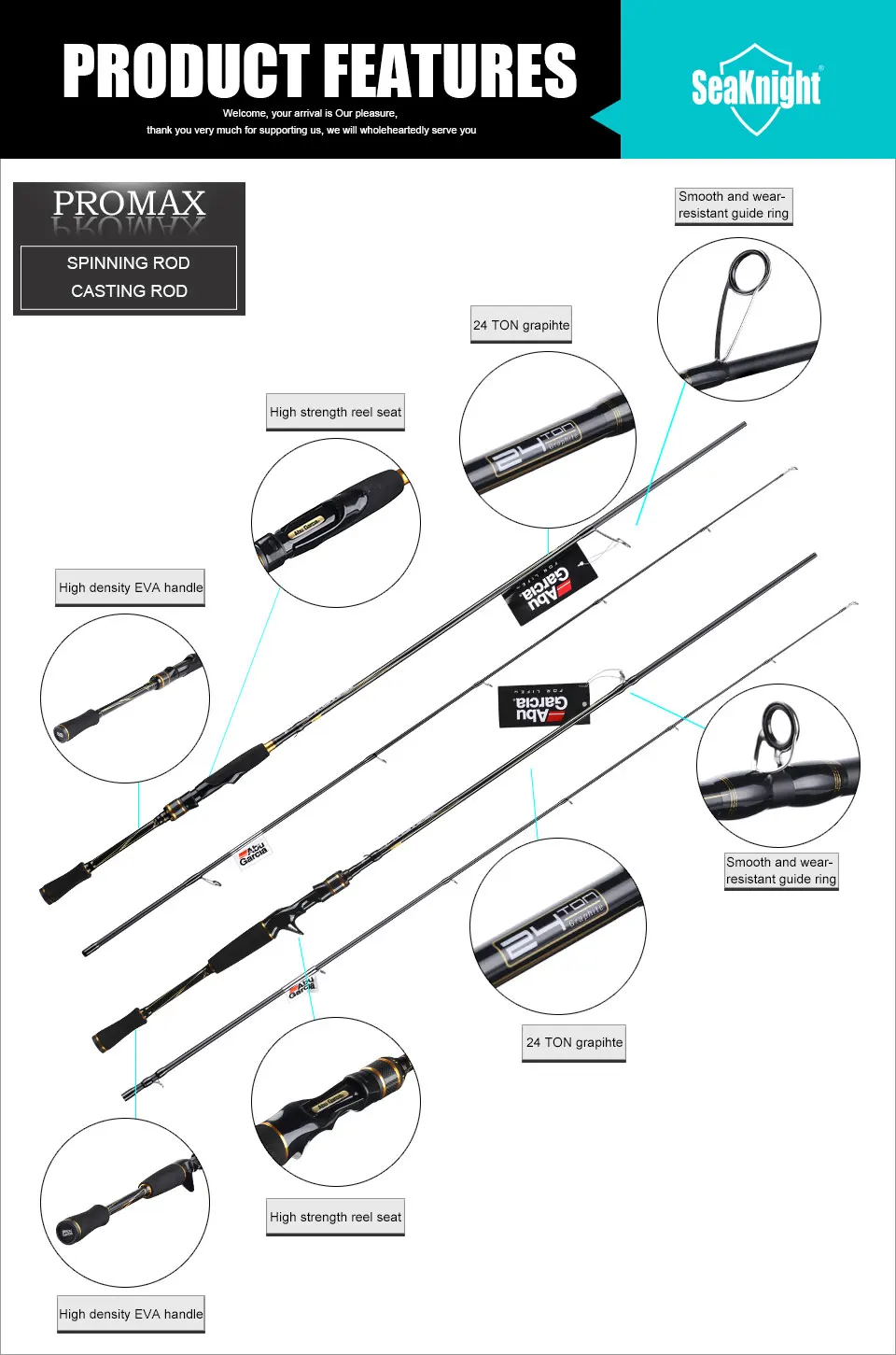 Abu Garcia POR MAX PMAX Carbon Spinning Rod M MH ML Power Fast Casting Rod 1.98M 2.13M 2.44M Fishing Rod Carp Fishing Pole