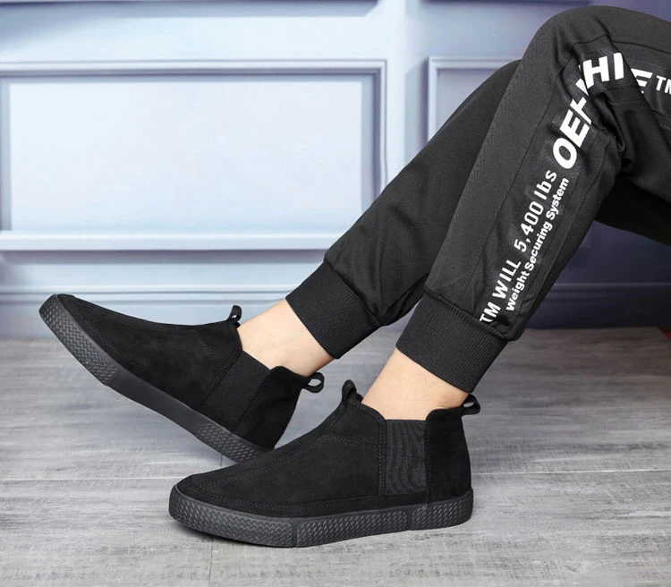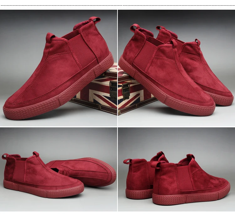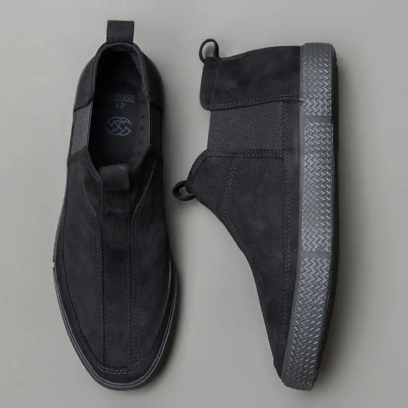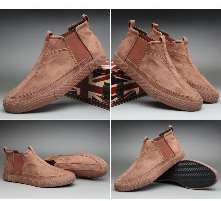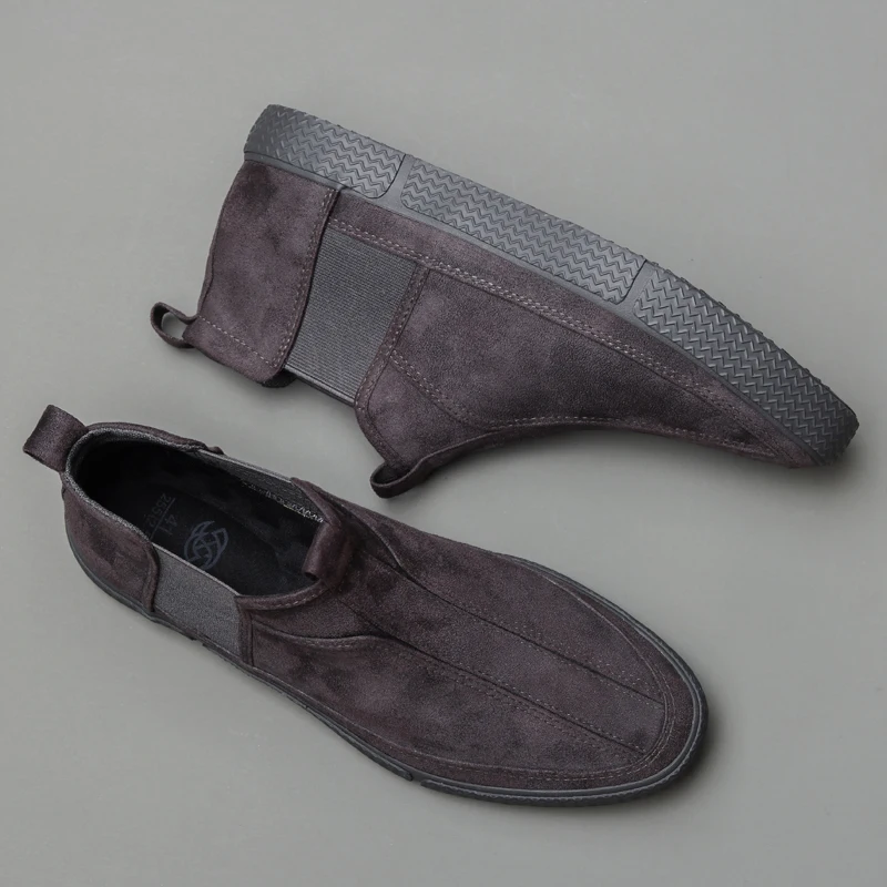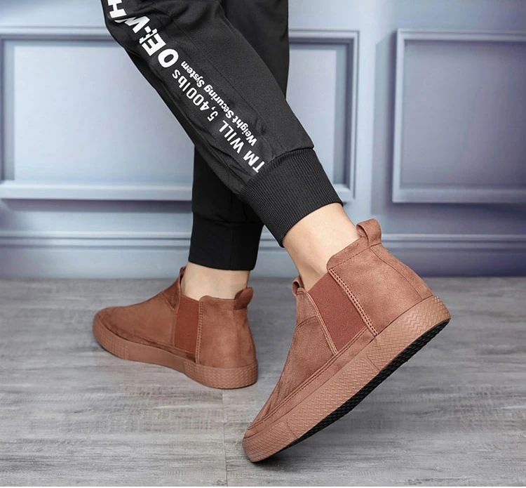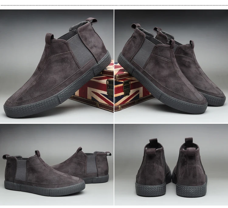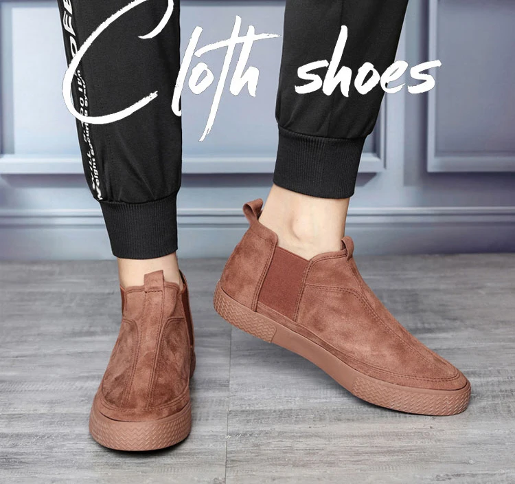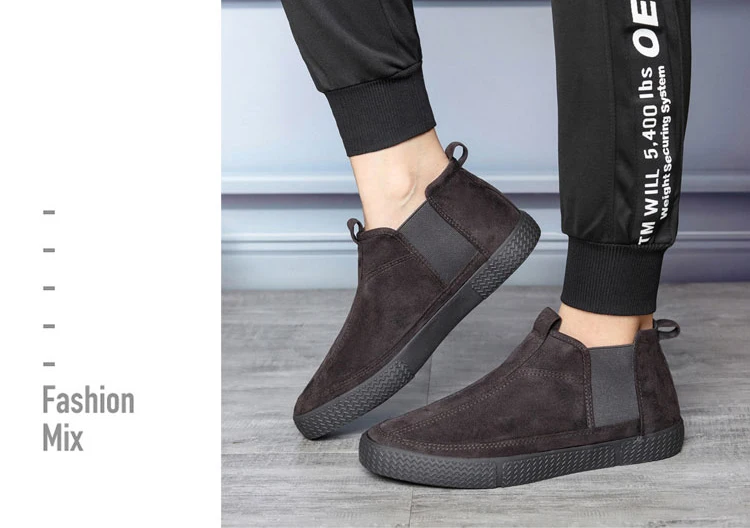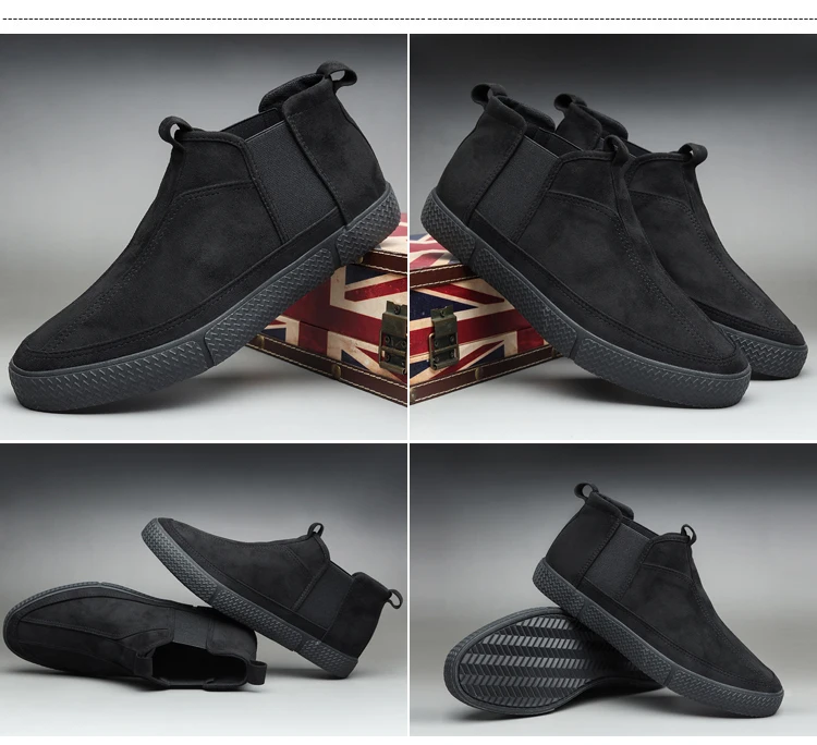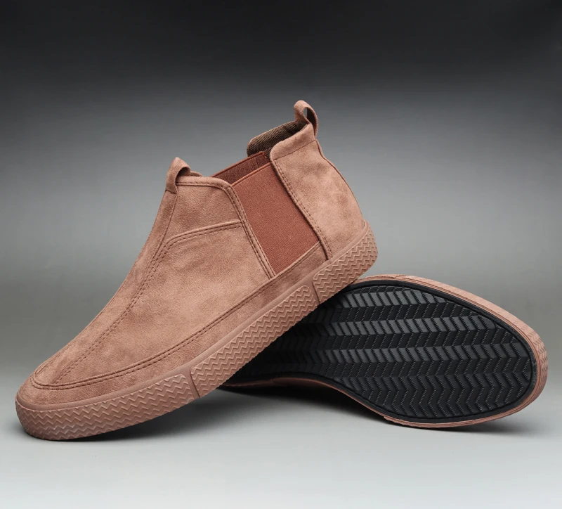 Autumn New Men’s Chelsea Boots British Fashion Flannel Slip on Suede Shoes Breathable Wear-resisting Rubber Loafer Boots