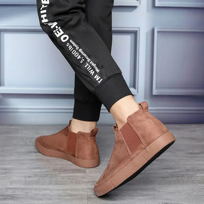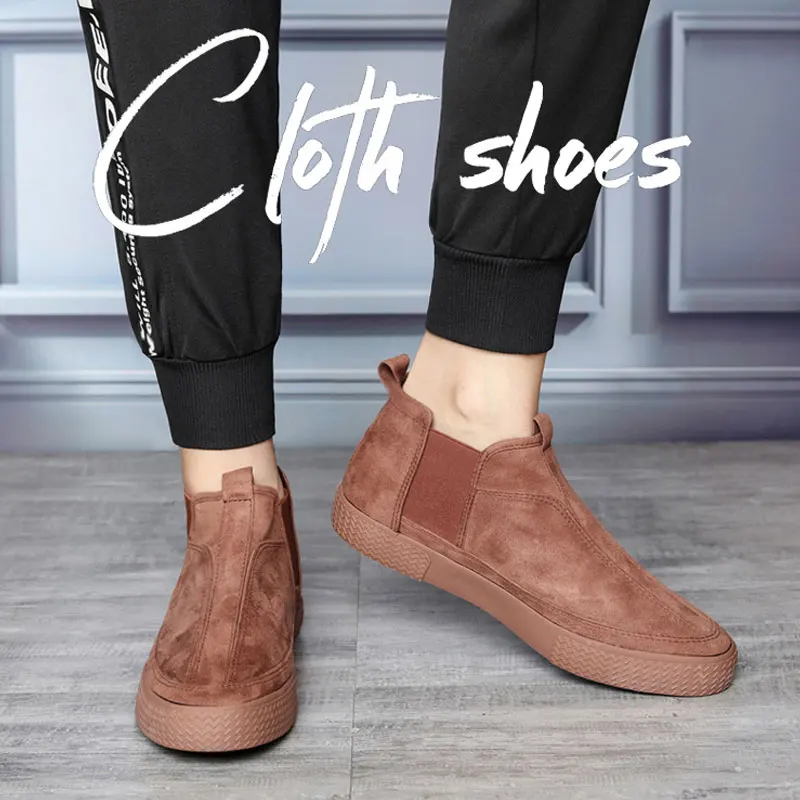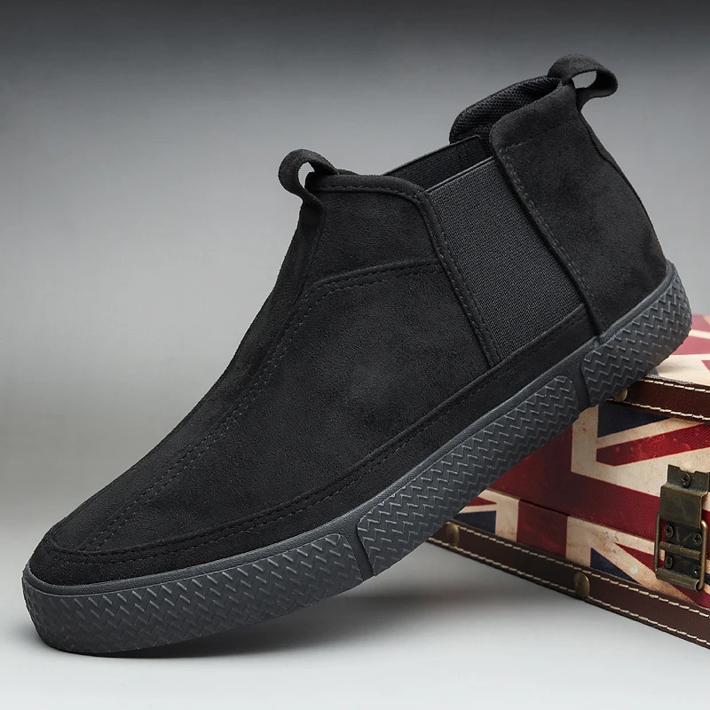 Autumn New Men’s Chelsea Boots British Fashion Flannel Slip on Suede Shoes Breathable Wear-resisting Rubber Loafer Boots