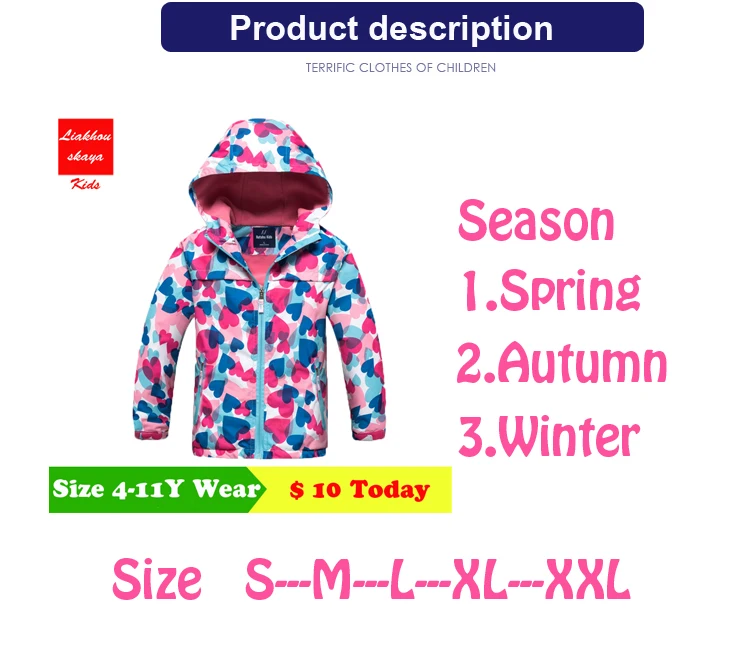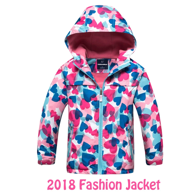 Jacket For Girls Children’s Hoodies Waterproof Outerwear Kids Windbreaker For Girl Spring Winter Pink Kids Coat Age 4-15