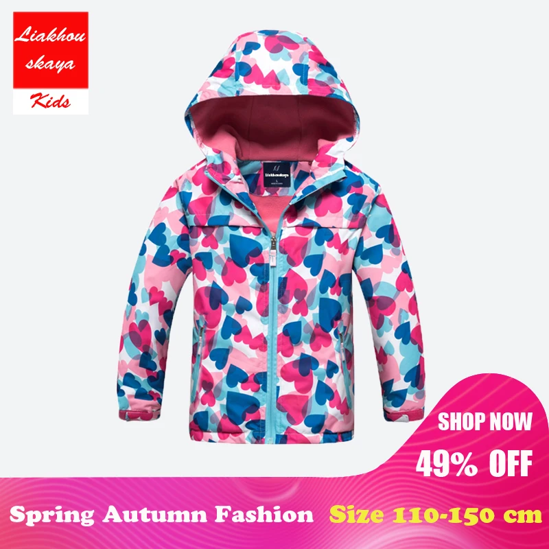 Jacket For Girls Children’s Hoodies Waterproof Outerwear Kids Windbreaker For Girl Spring Winter Pink Kids Coat Age 4-15