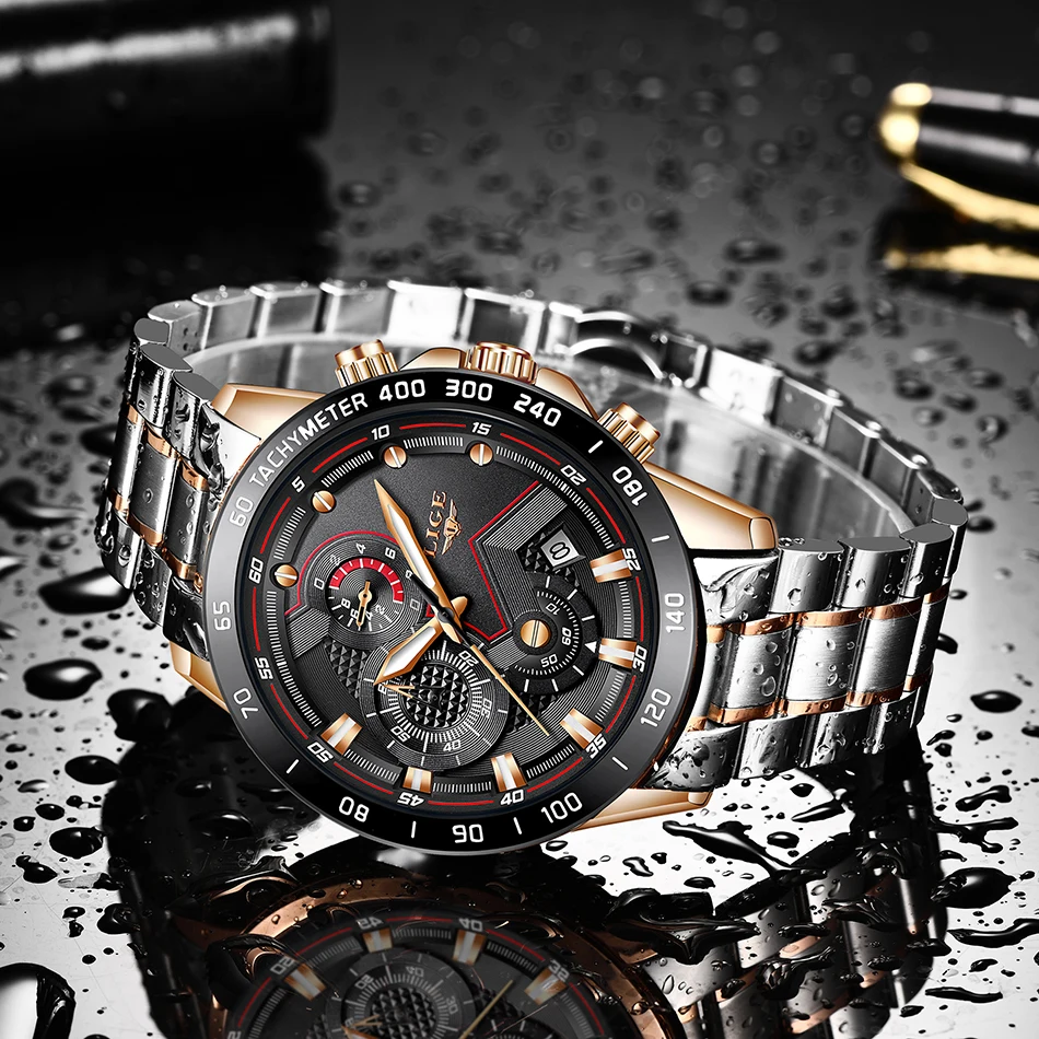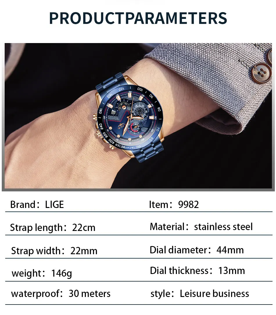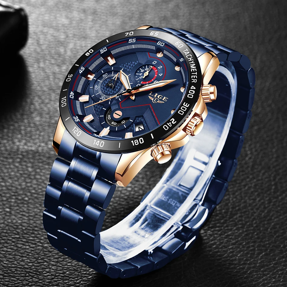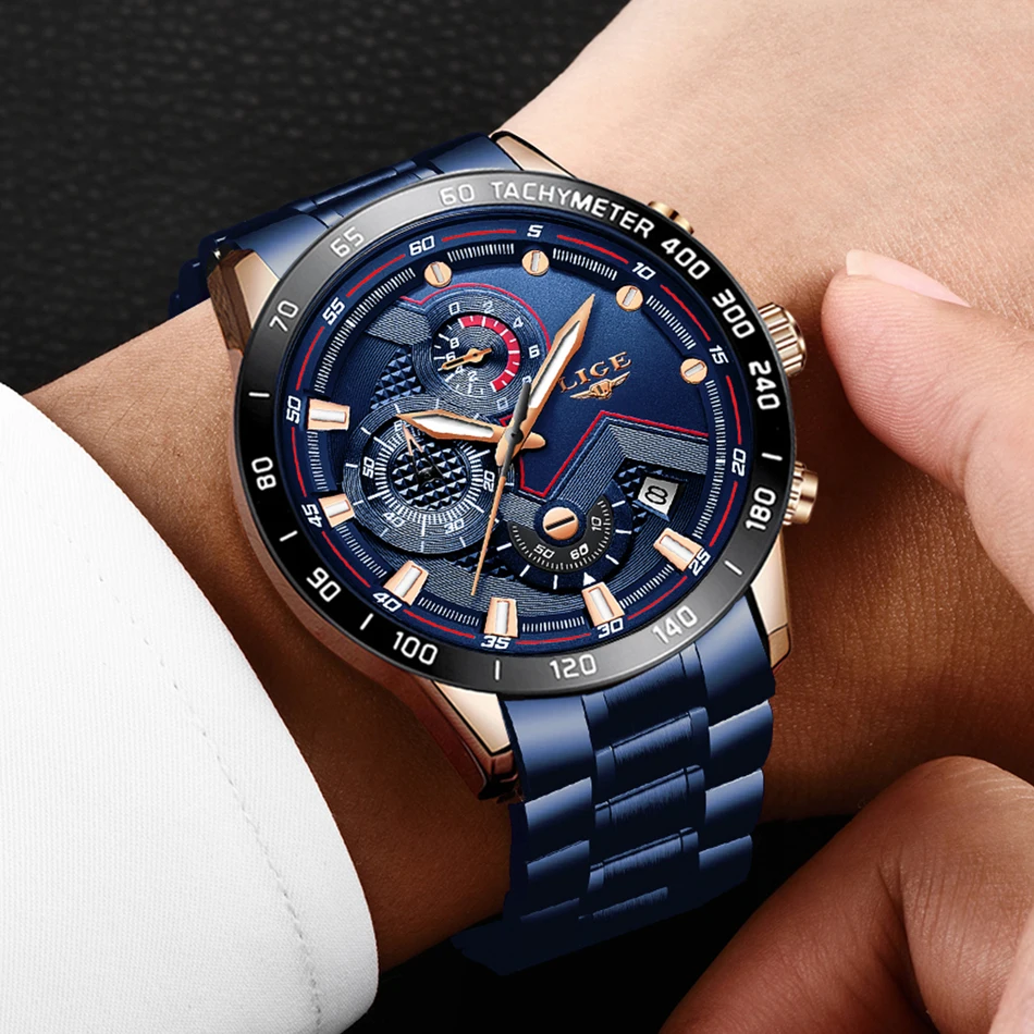 LIGE New Blue Fashion Business Clock Mens Watches Top Brand Luxury All Steel Waterproof Quartz Gold Watch Relogio Masculino