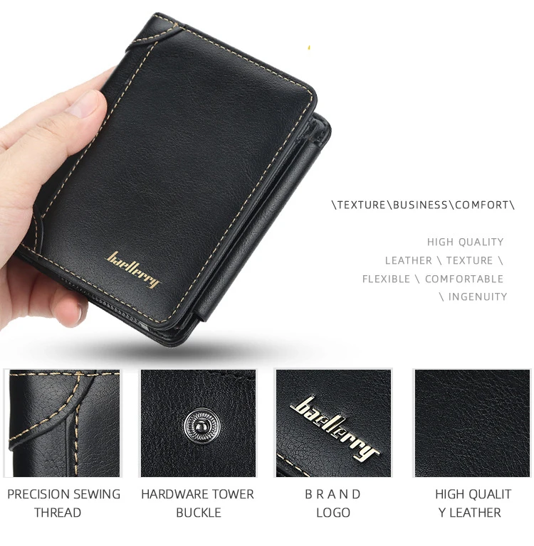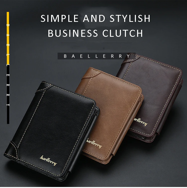 Men wallet With Coin Bag Zipper Purse fashion 3 Fold Wallet Coin Purses