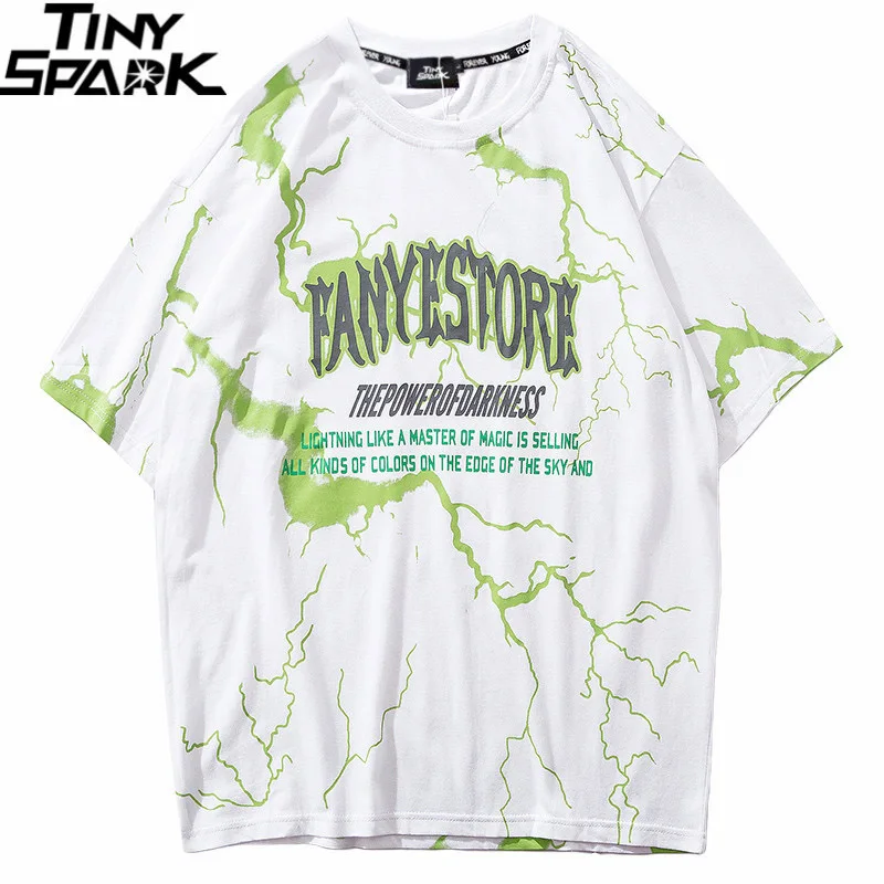 T Shirt Mens Hip Hop Dark Lightning Tshirt Streetwear Summer Cotton Harajuku T-Shirts Short Sleeve Tops Tees Street Wear