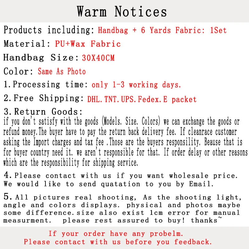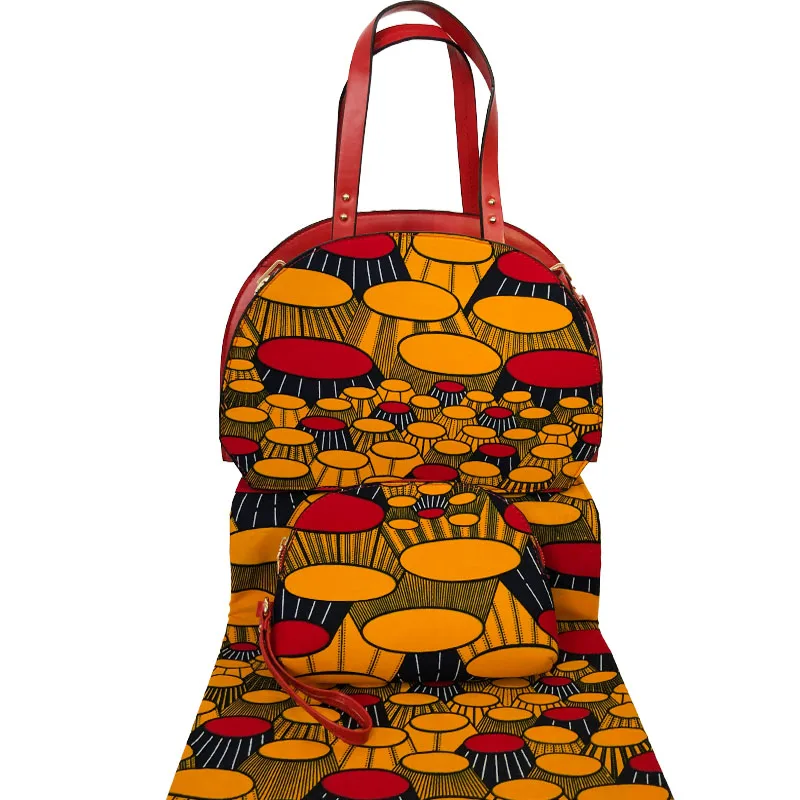 Wax Fabric Made Handbag And 6Yards Fabirc Set African Wax Print Fabric With Bag To Match Set For Party