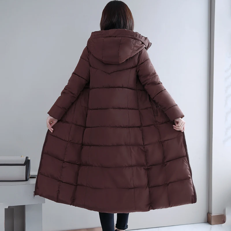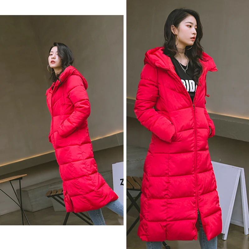 Winter Women Jacket X-long Hooded Cotton Padded Female Coat High Quality Warm Outwear Womens Parka Manteau Femme Hiver