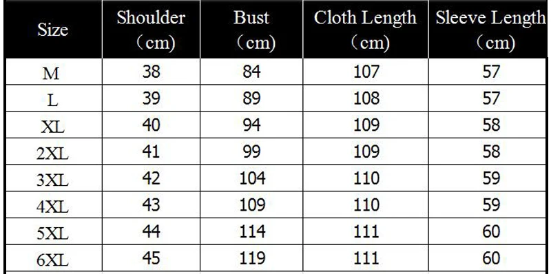 SizeSizeShoulderBustCloth LengthSleeve Length