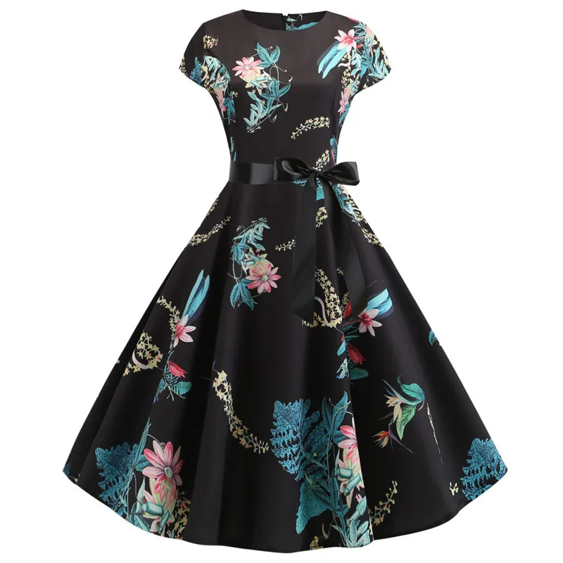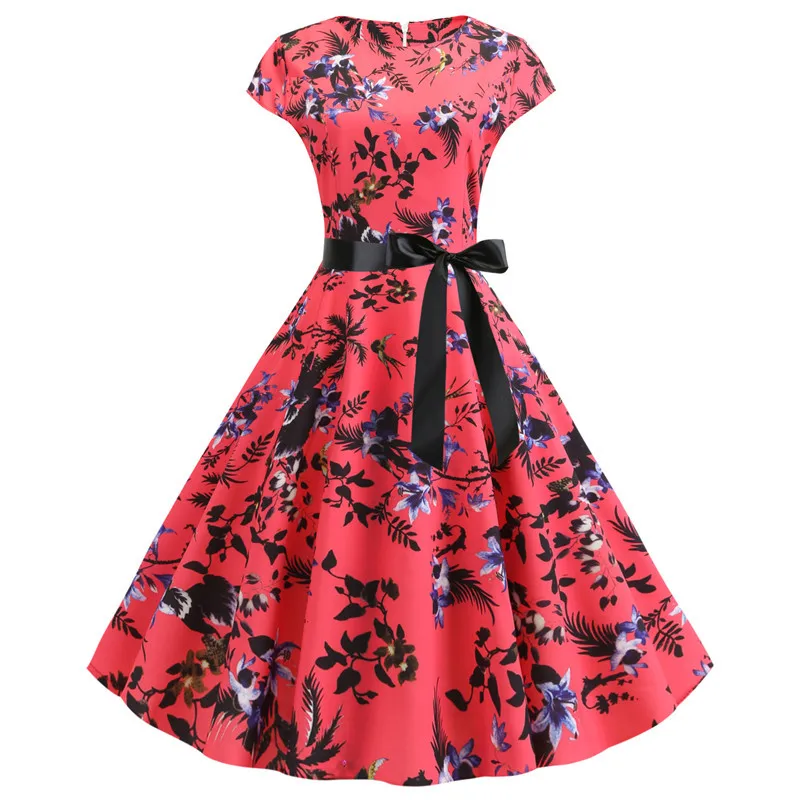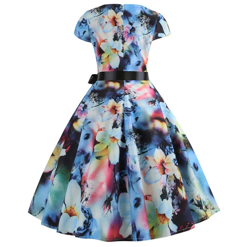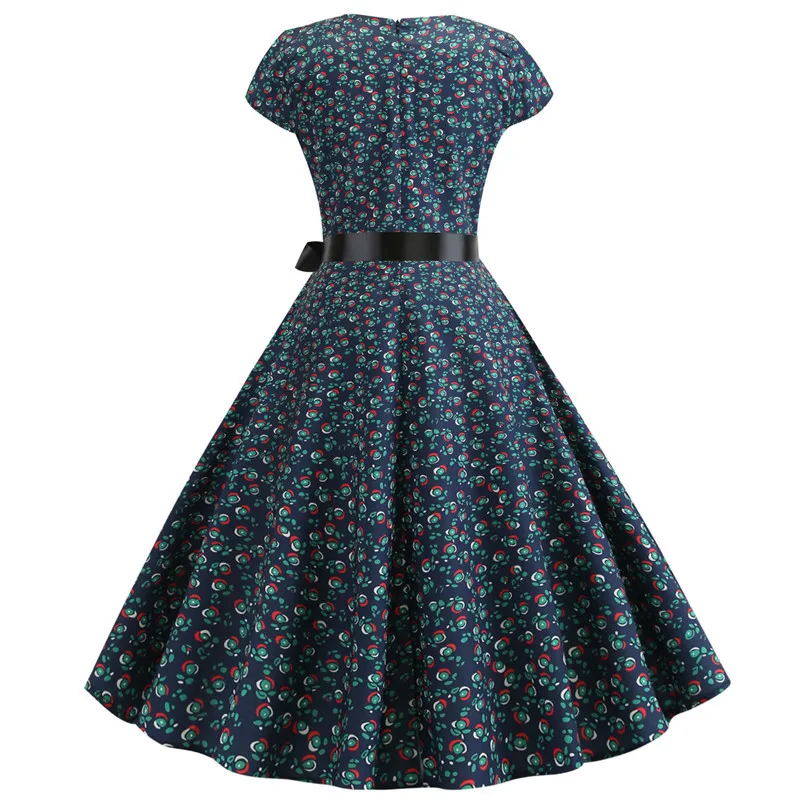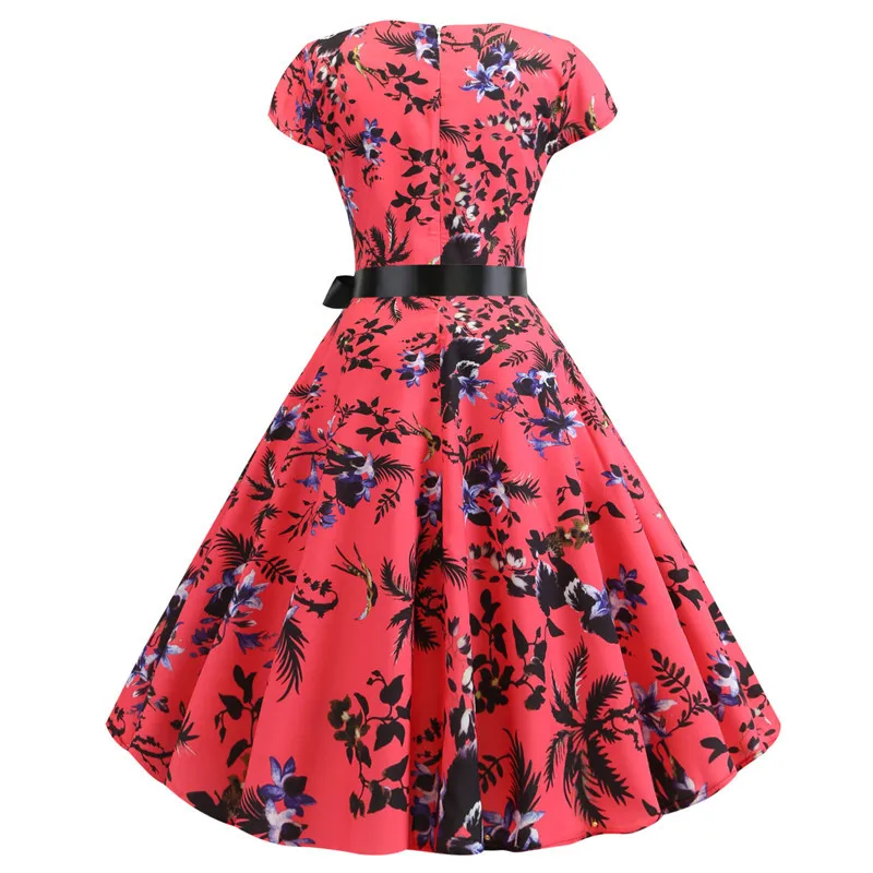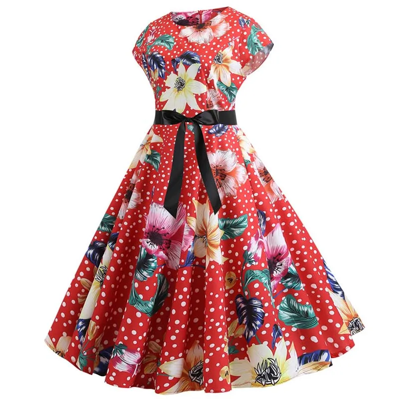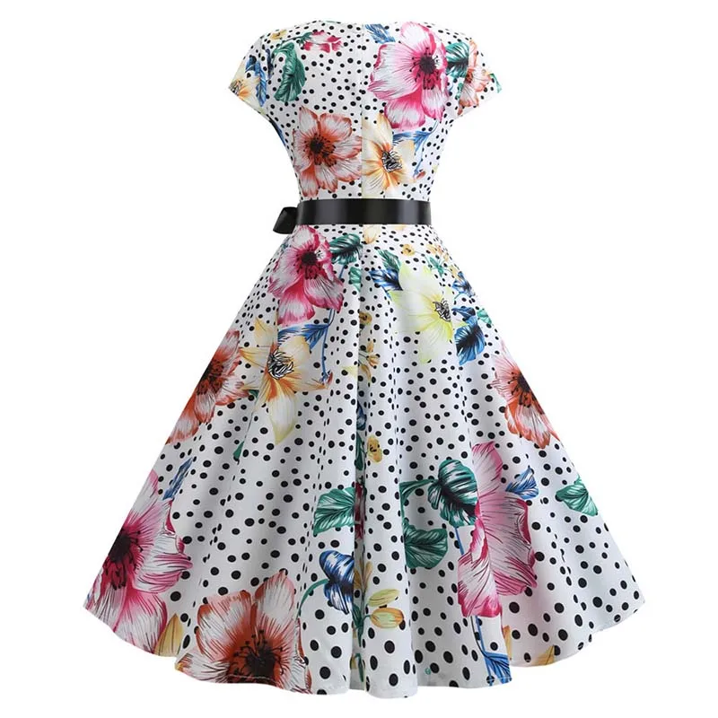 Women Dress Vintage Floral Print Rockabilly Dress Robe Femme Sundress Vestidos Plus Size Polka Dot Party Dress
