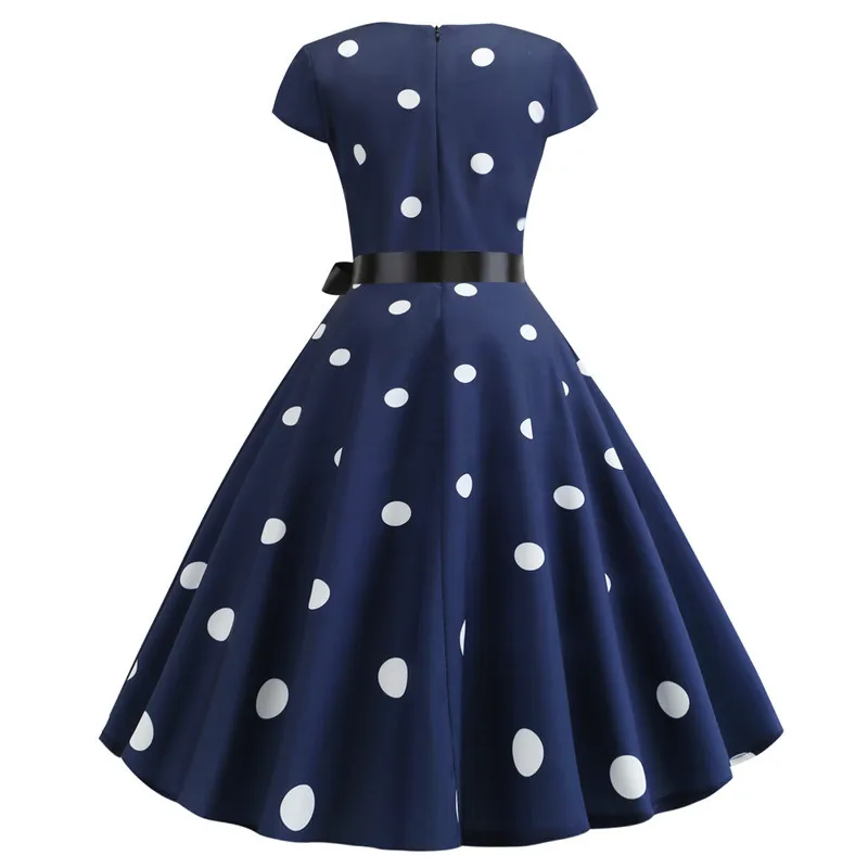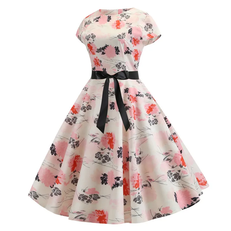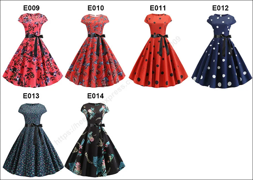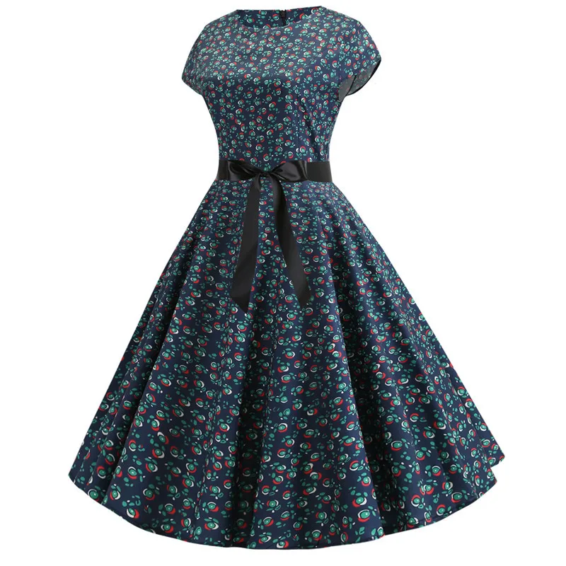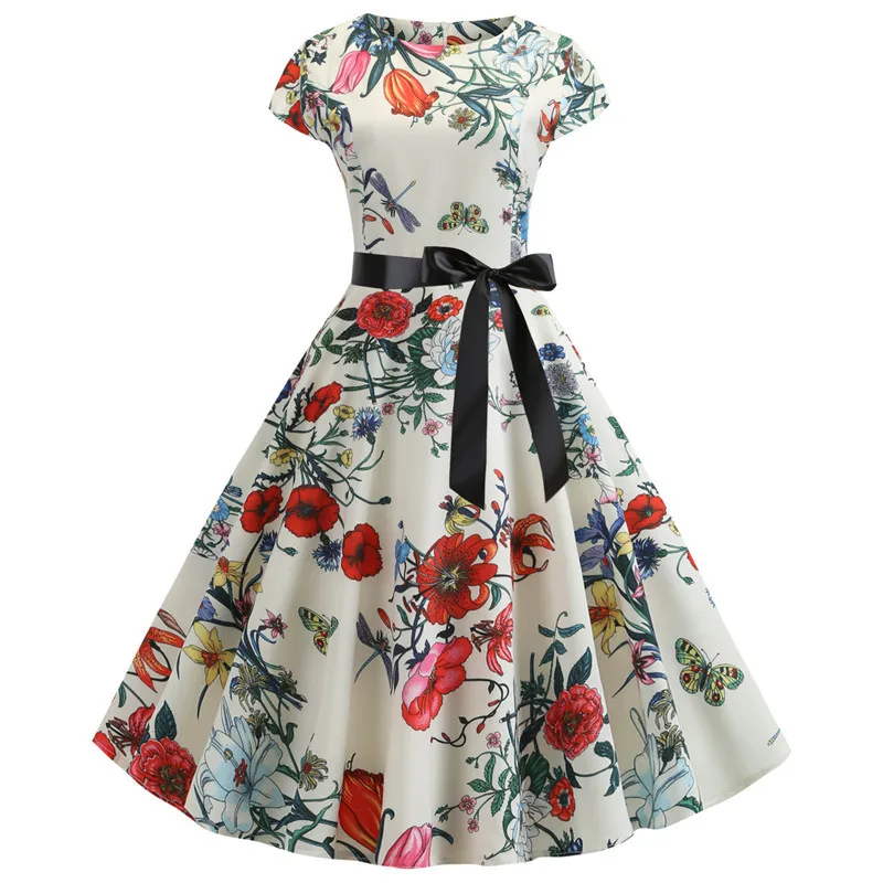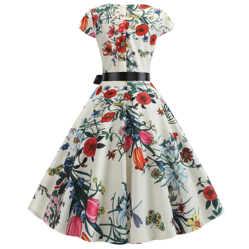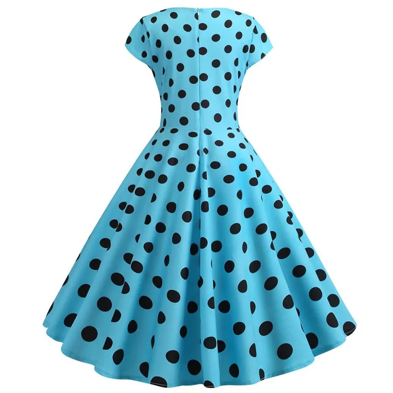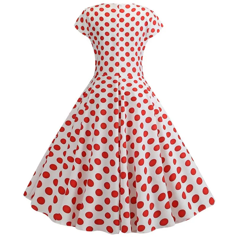 Women Dress Vintage Floral Print Rockabilly Dress Robe Femme Sundress Vestidos Plus Size Polka Dot Party Dress