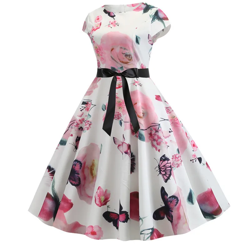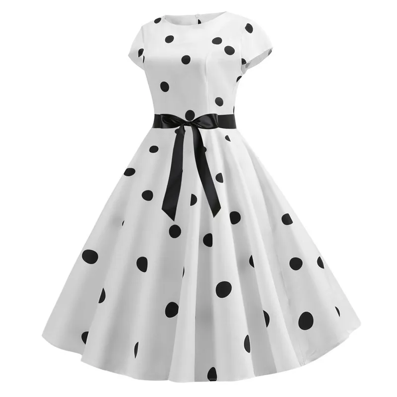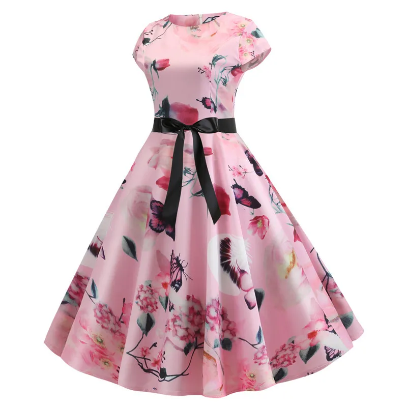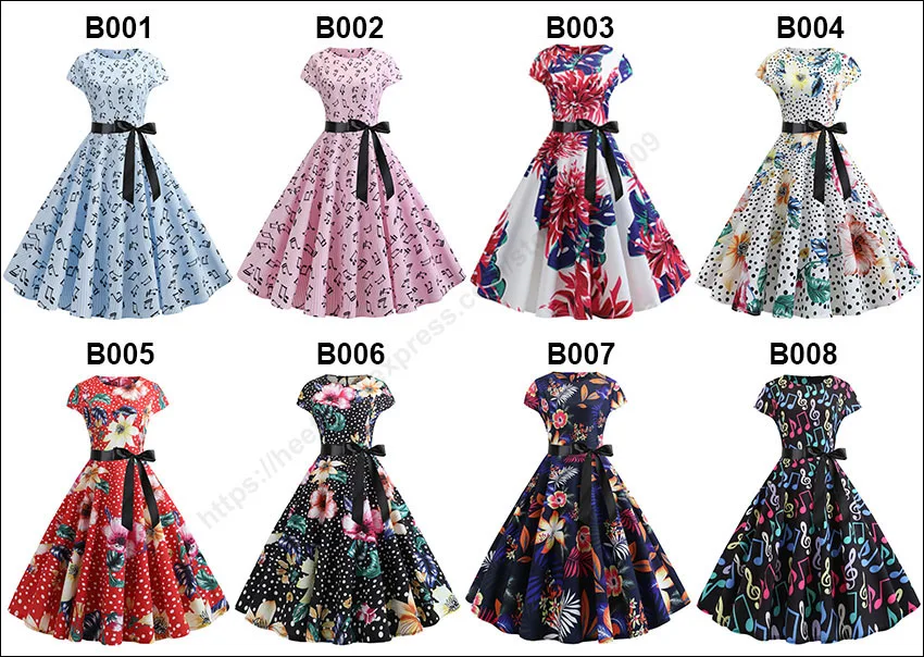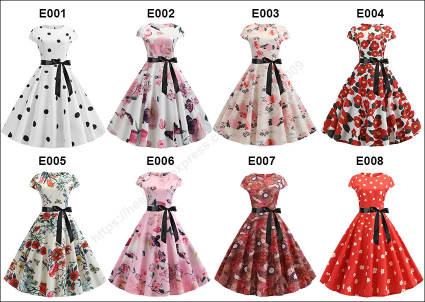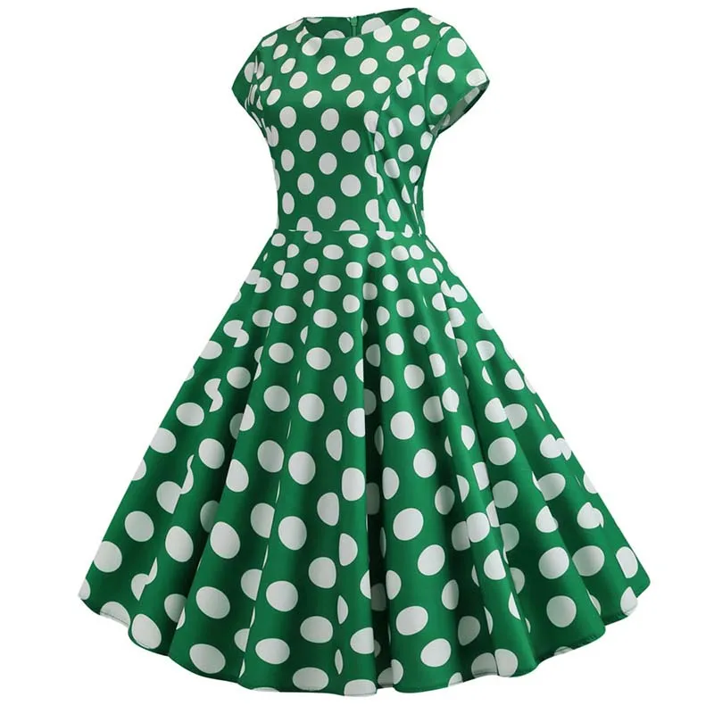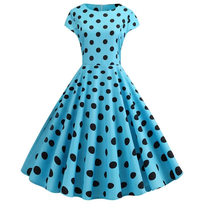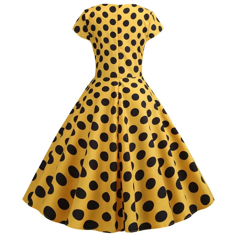 Women Dress Vintage Floral Print Rockabilly Dress Robe Femme Sundress Vestidos Plus Size Polka Dot Party Dress
