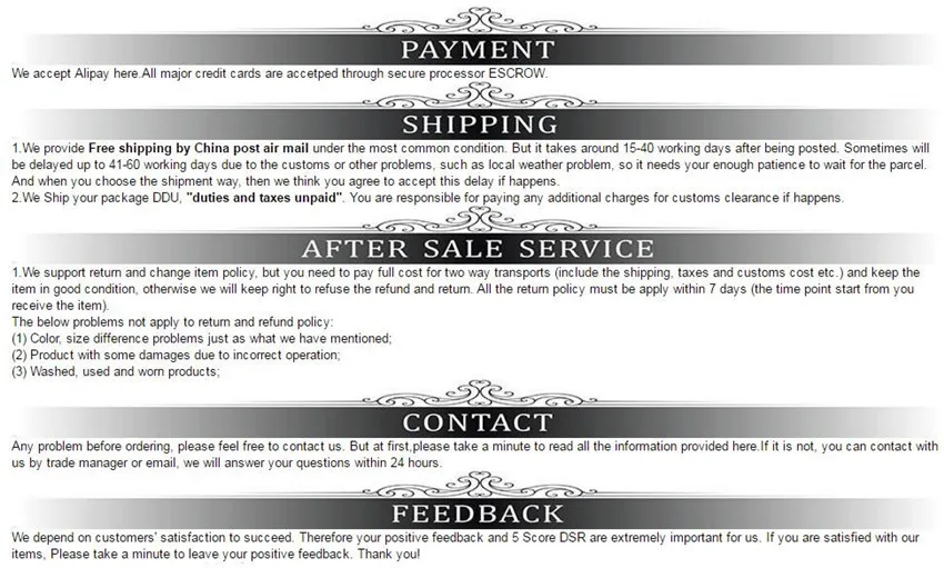 • If you did not receive the product within the guaranteed time( 45 days not including 2-5 day processing) you can request a refund or a reshipment.