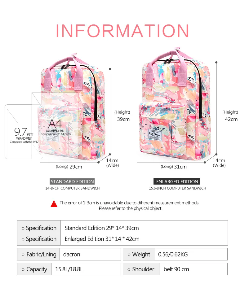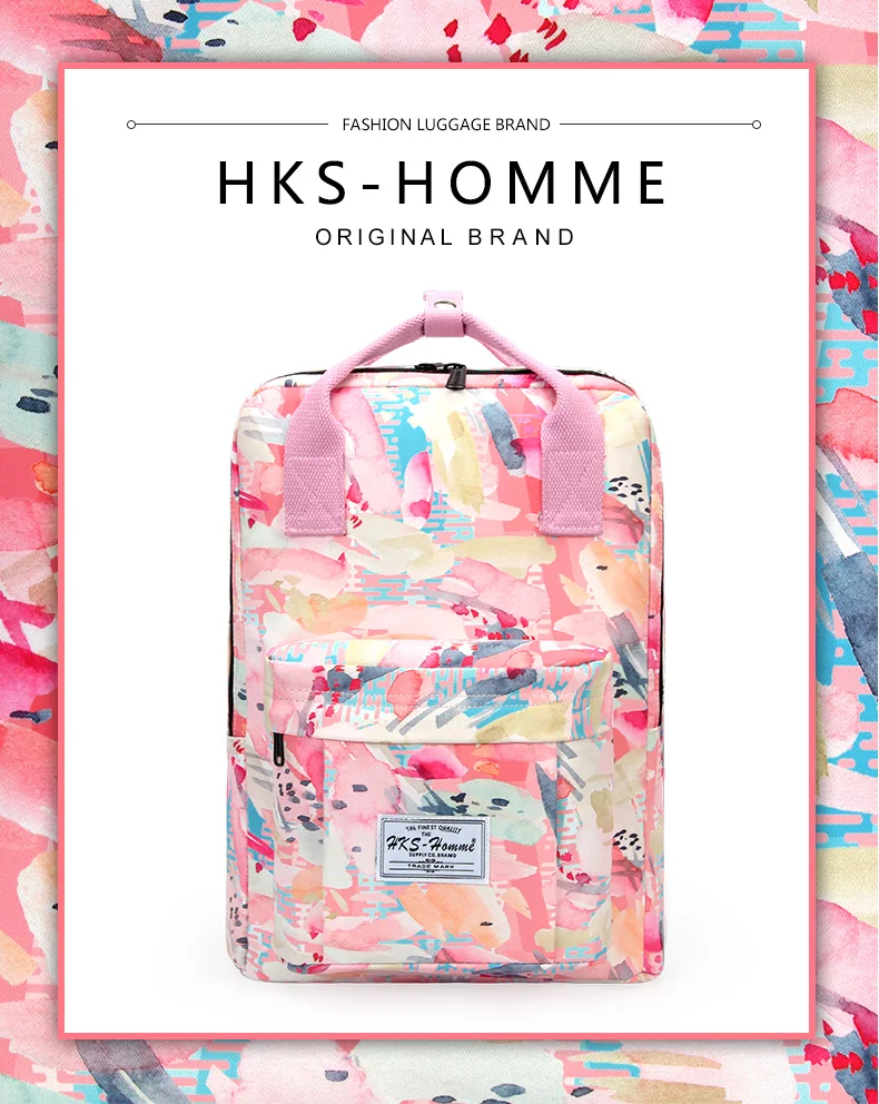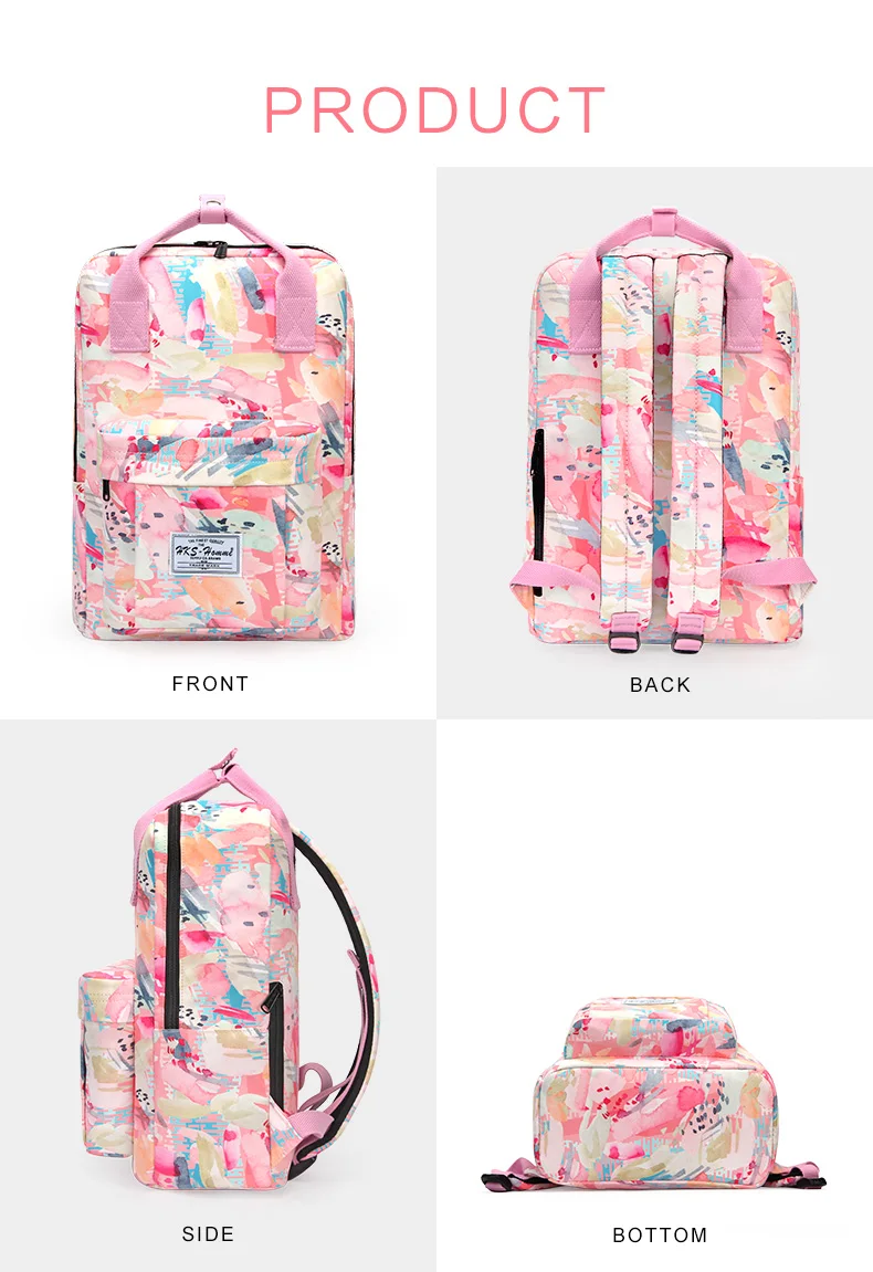 Canvas Women Backpack Schoolbag Printing Cute School Bag Bagpack for Teenager Girls 14 15.6 inch laptop bag pink waterproof