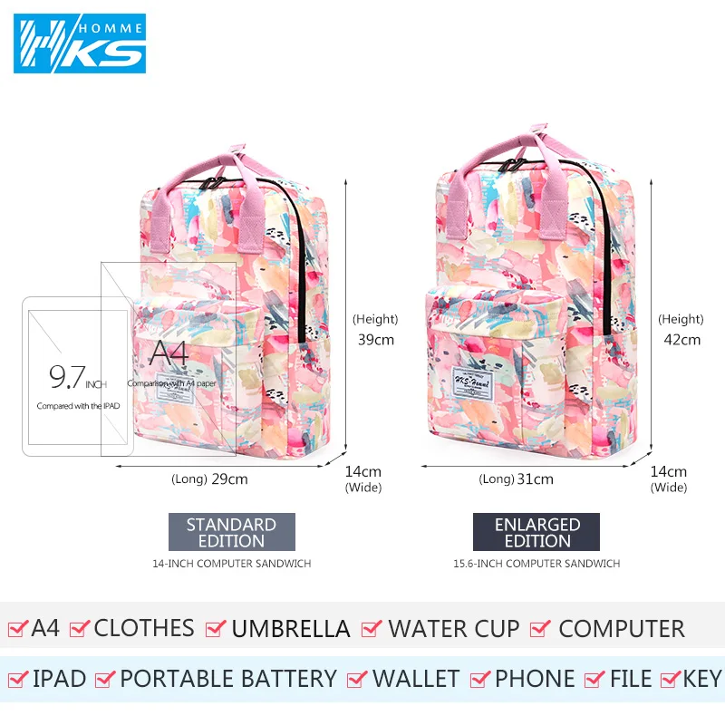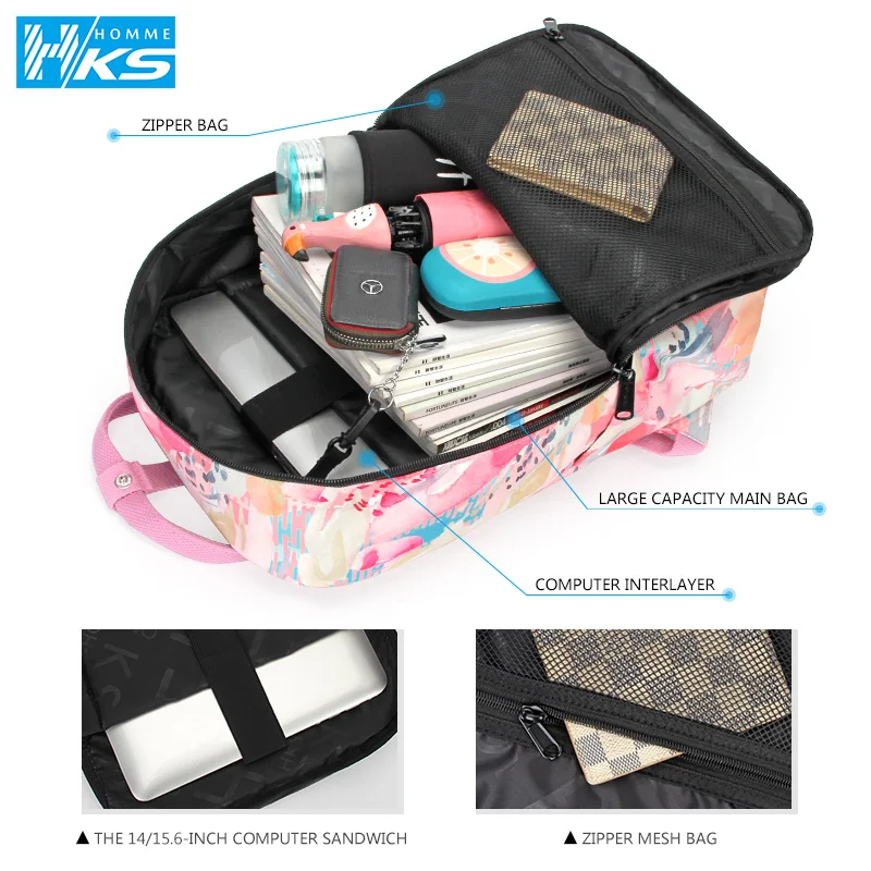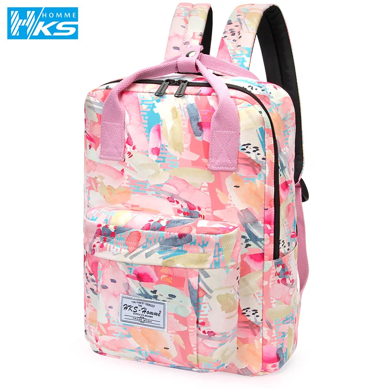 Canvas Women Backpack Schoolbag Printing Cute School Bag Bagpack for Teenager Girls 14 15.6 inch laptop bag pink waterproof