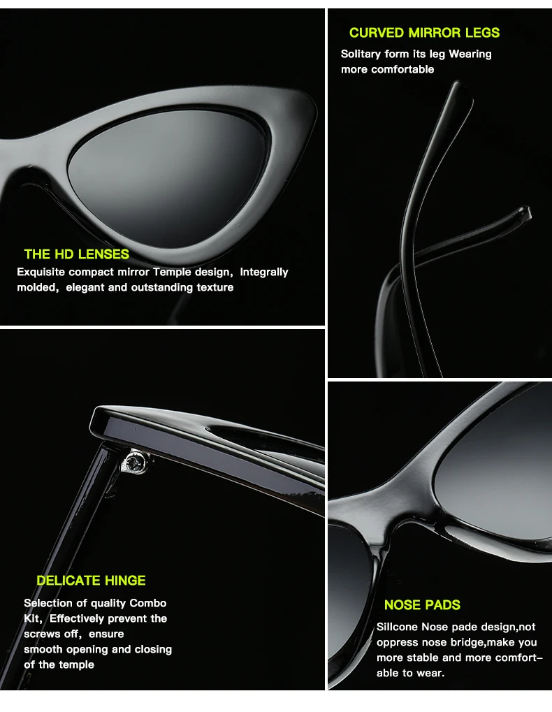 2020 Cat Eye Fashion Sunglasses Plastic Women Vintage Small Sun Glasses Mirror Sunglasses Female UV400
