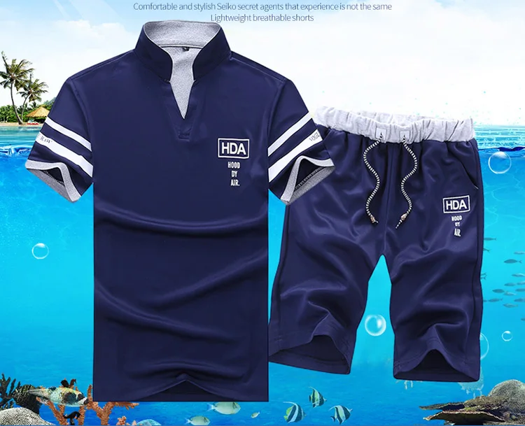 2020 Men’s Summer Sets Shorts + Short Sleeve T shirt Men Beach Shorts Tee Male Tracksuits Elastic waist Shorts homme Solid color