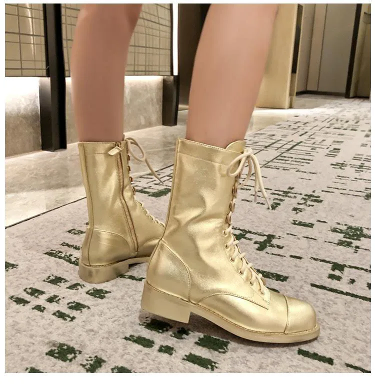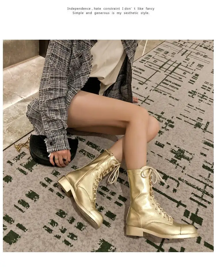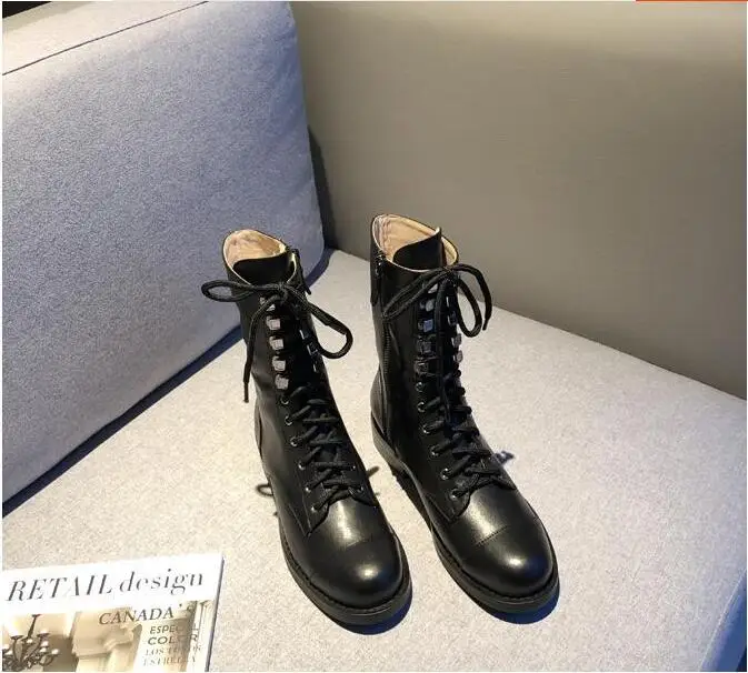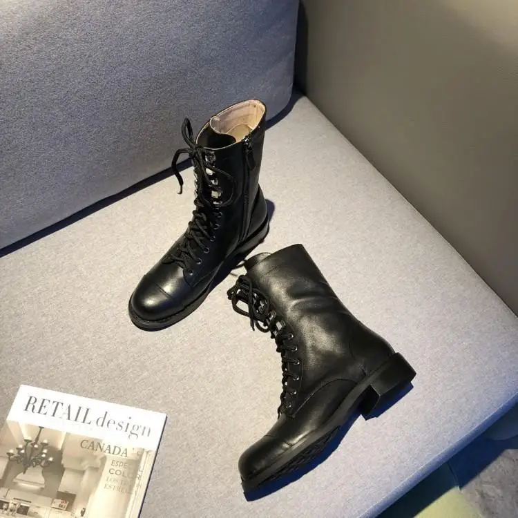 2020 New design Flat comfortable casual wear women’s short boots fashion style lacing shoes motorcycle boots