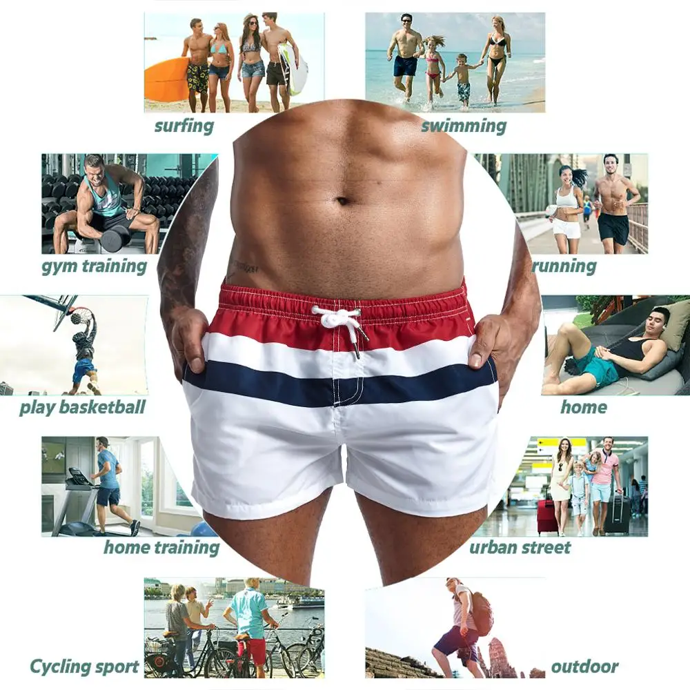 2020 New Fashion Men’s Board Shorts Fast Dry Male Swim Trunks Striped Casual Sport Surf Beachwear Hybird Shorts AM2212
