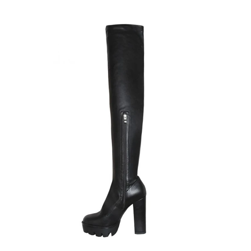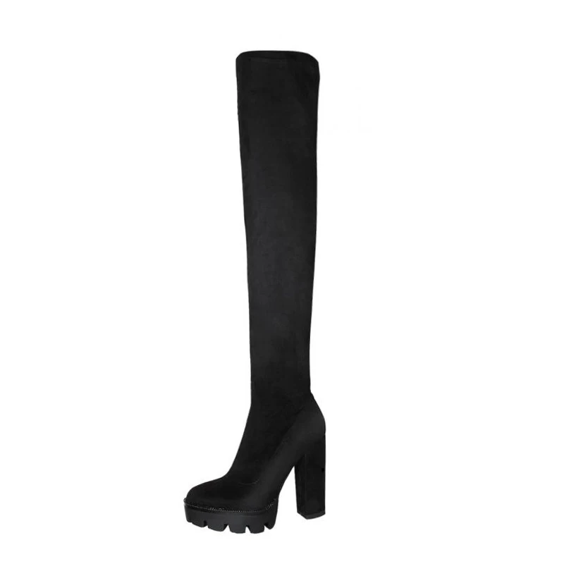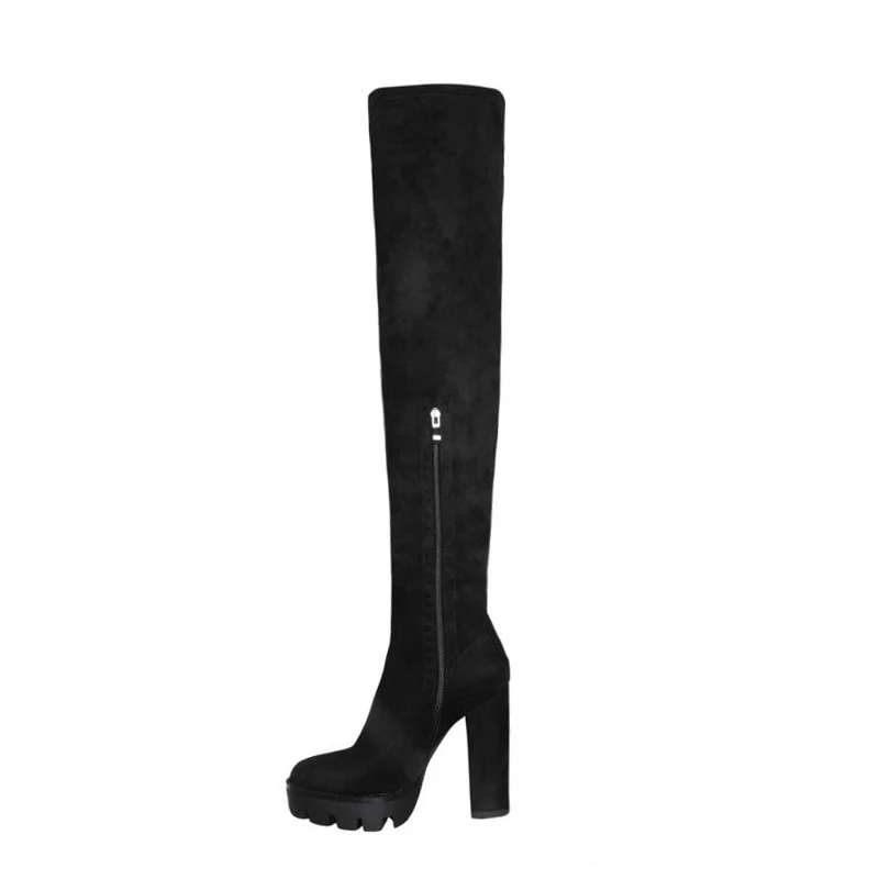 Flock Leather Women Over The Knee Boots 12cm Chunky High Heels Autumn Woman gothic Shoes bota
