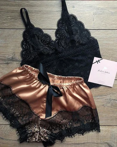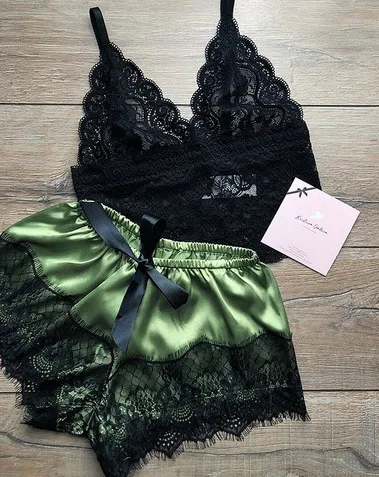 Lace halter shorts two-piece pajama suit for women’s plus-size lace home wear