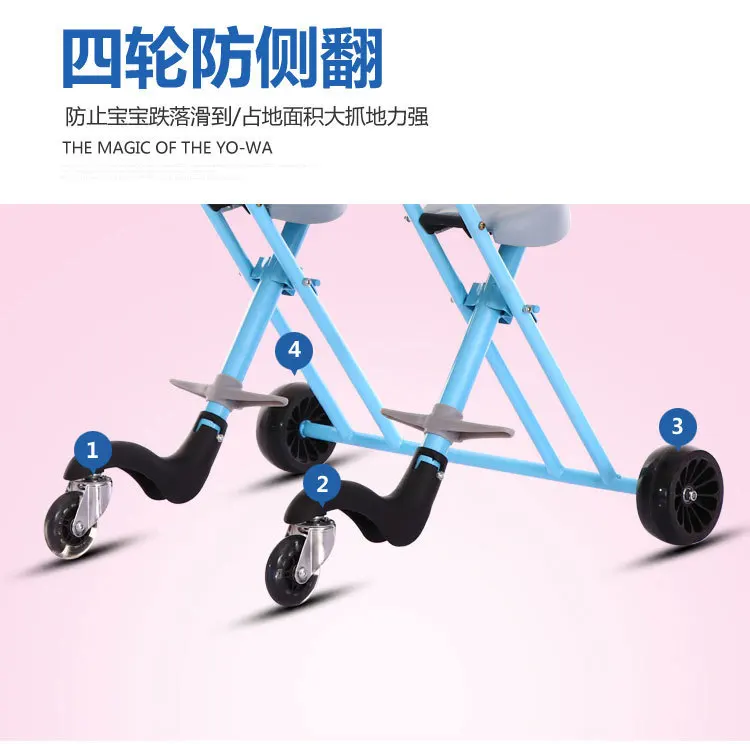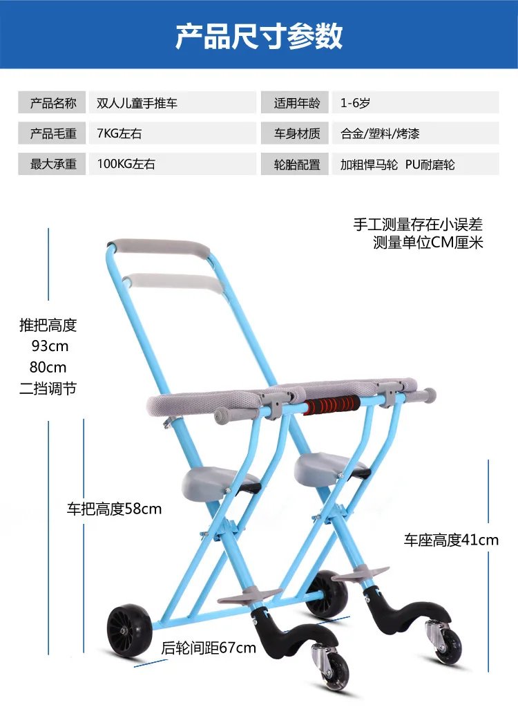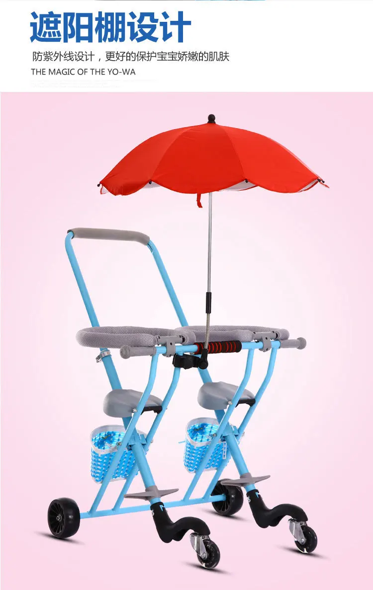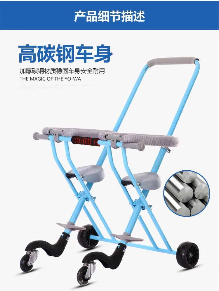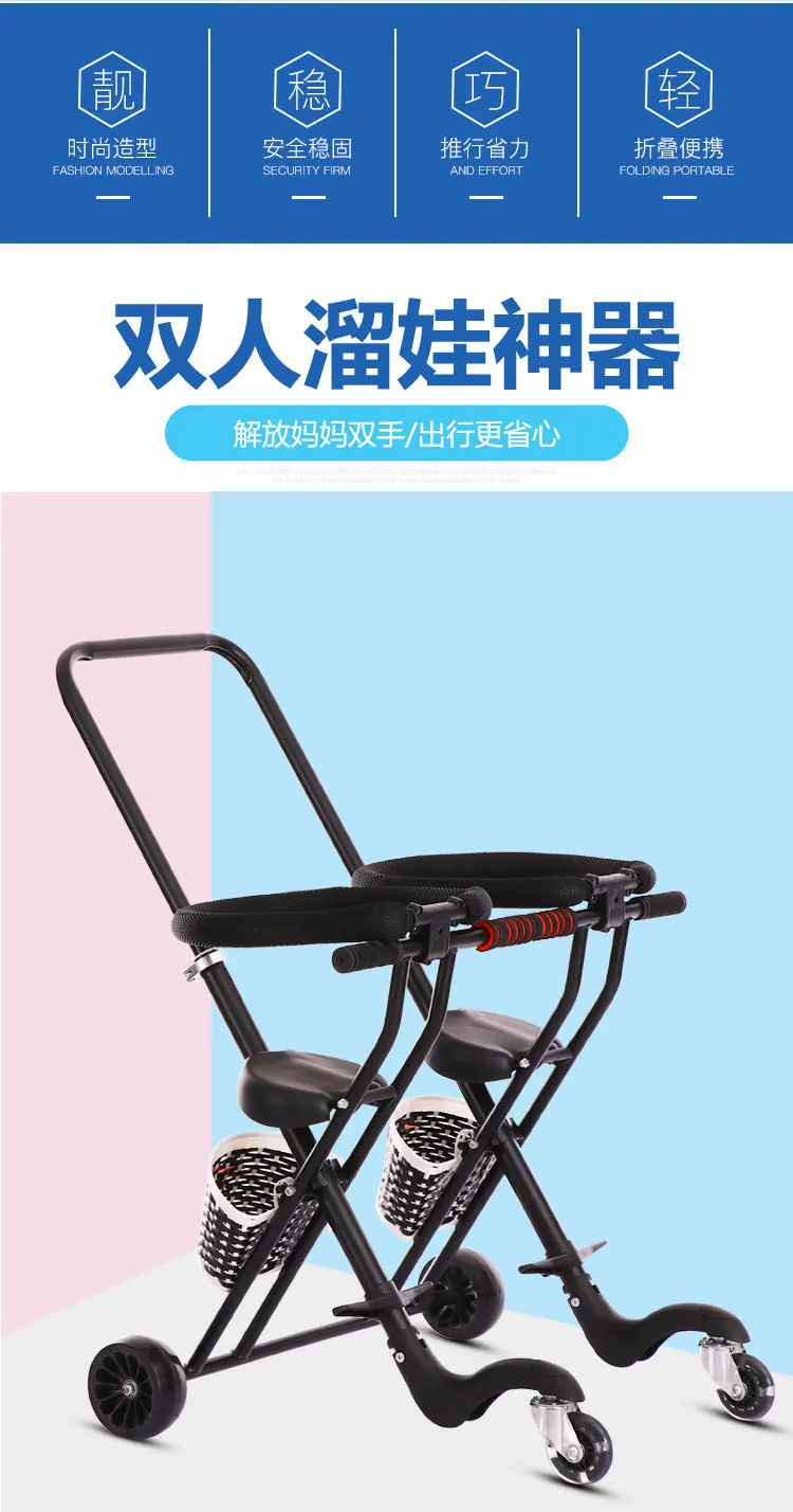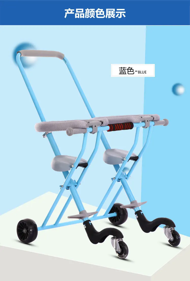 2020 New Walking baby artifact twin children can ride trolley to prevent rollover, 1-3-year-old simple folding baby carriage
