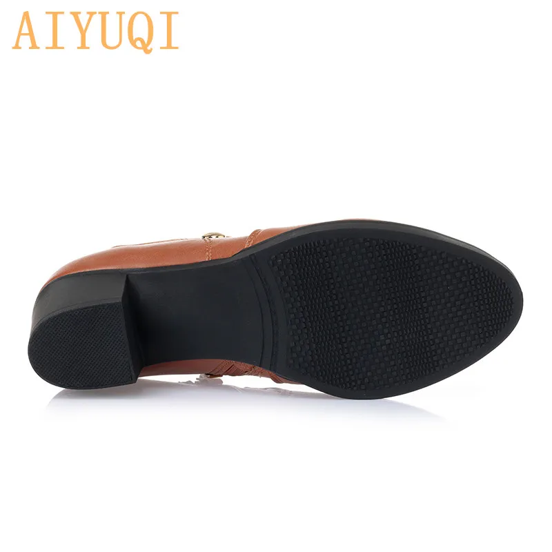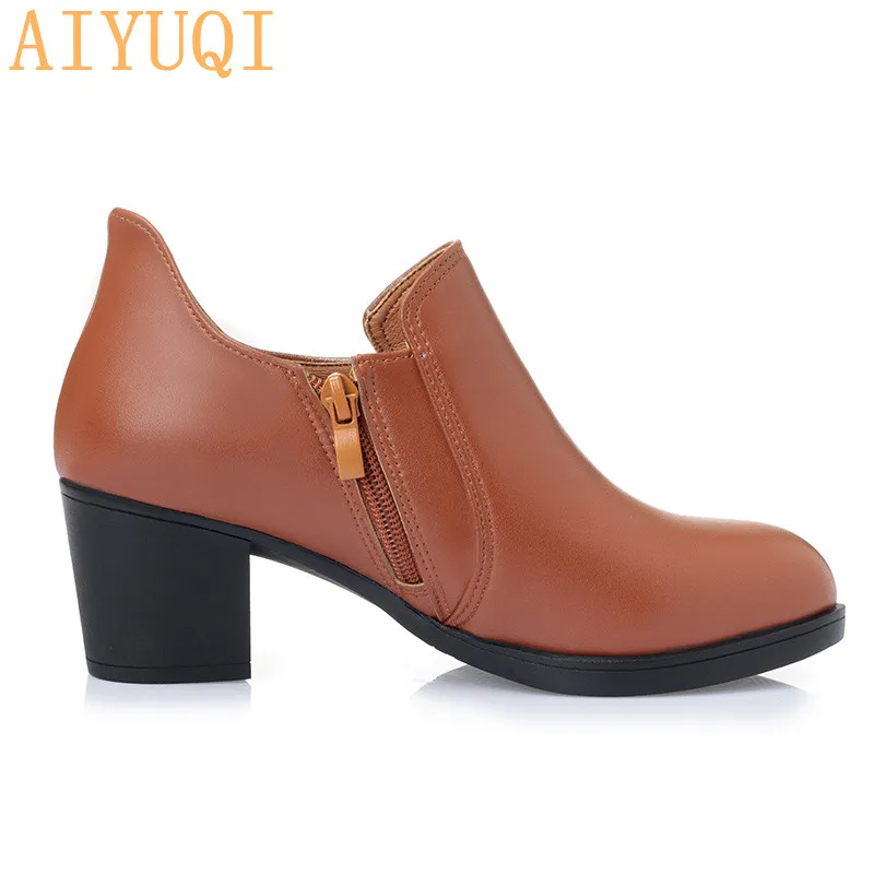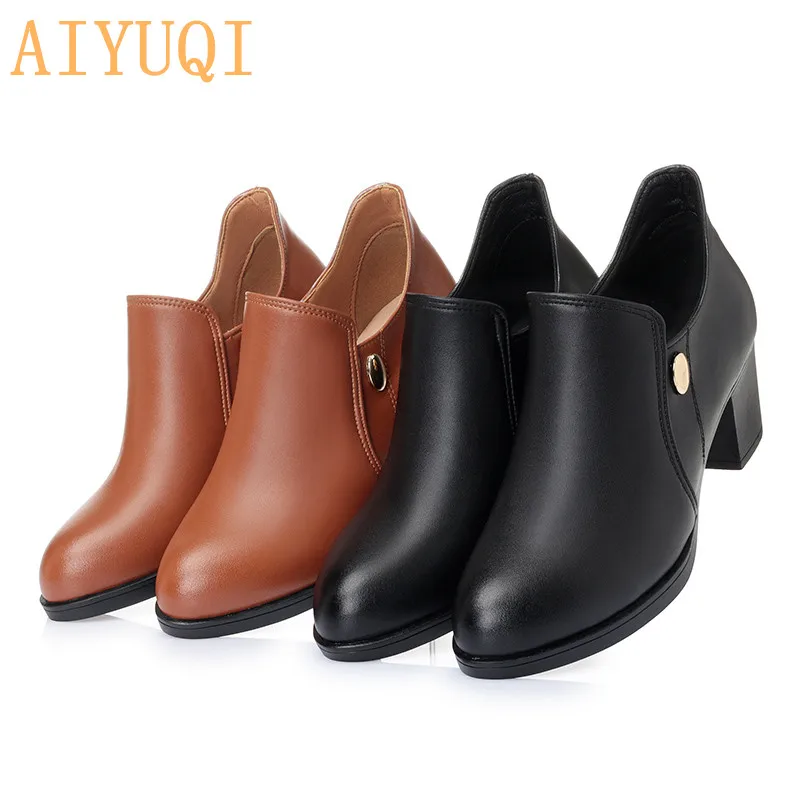 2020 New Women Dress Pumps Fashion Genuine leather women shoes Square Heels Shoes Woman chaussure femme Pointed Toe Boots