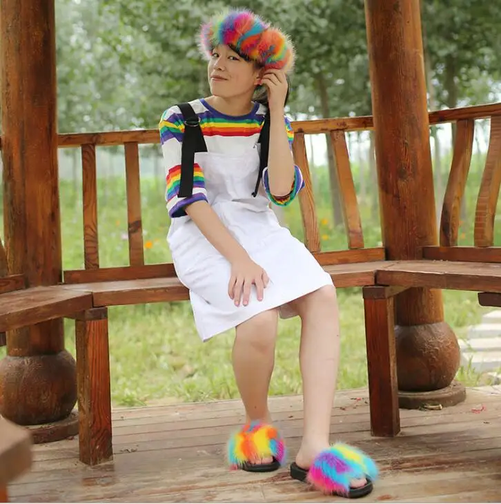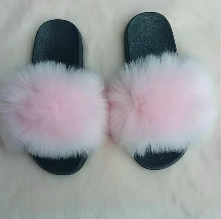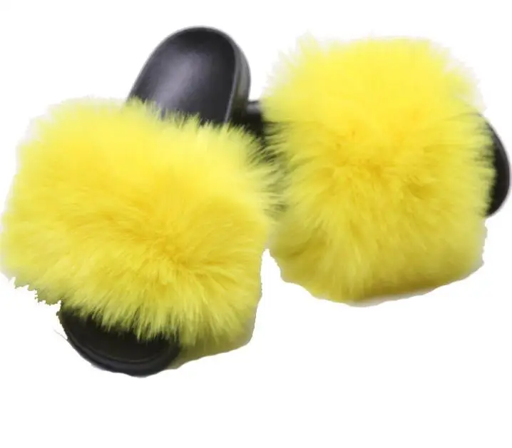 2020 new Women’s non-slip PVC word fashion slippers home imitation fox fur summer ladies new plush slippers