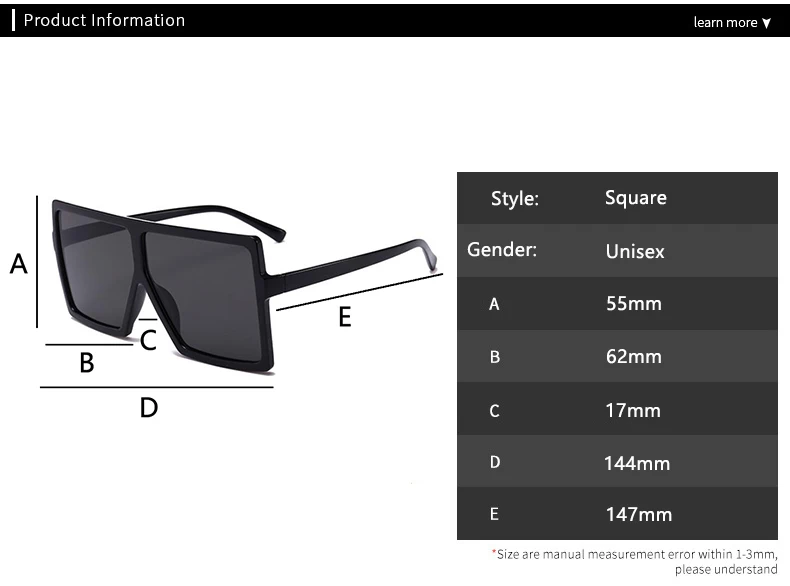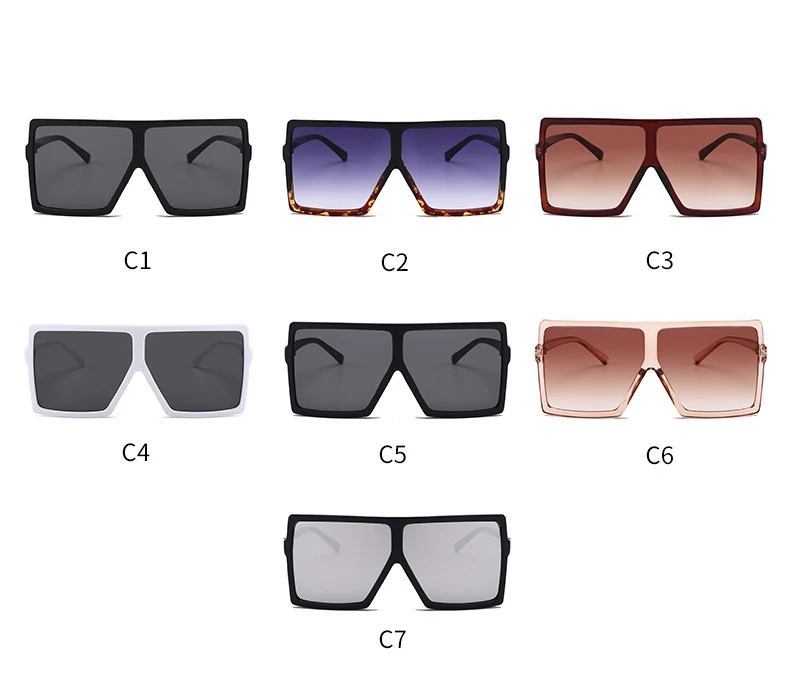2020 Oversized Shades Woman Sunglasses Black Fashion Square Glasses Big Frame Sunglasses Vintage Retro Glasses oculos feminino