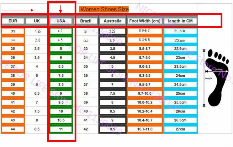 SizeHeel to ToeEuropeanGreat BritainBrazilChinese Size