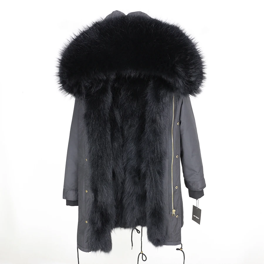 2020 Real Fur Coat Winter Jacket Women Long Parka Waterproof Big Natural Raccoon Fur Collar Hood Thick Warm Real Fox Fur Liner