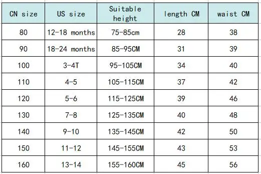 Kids US size:12M-18M-2-3-4-5-6-7-8-9-10-11-12-13-14 years