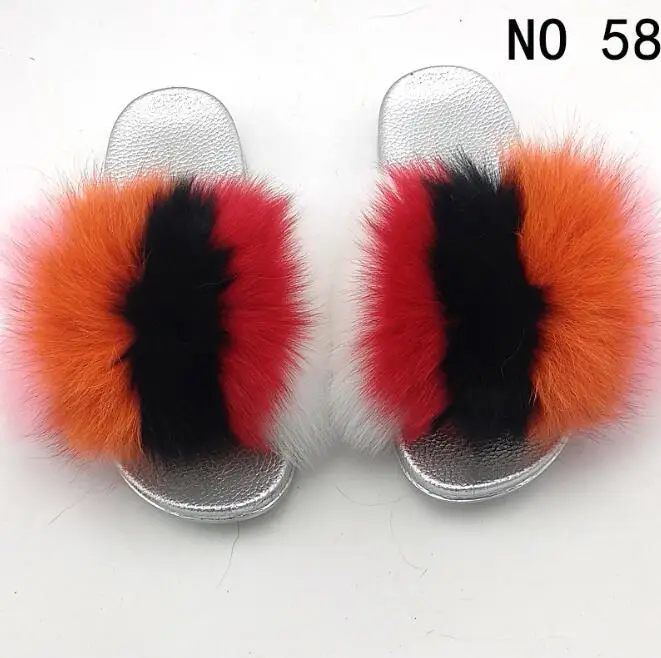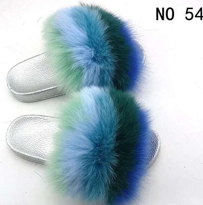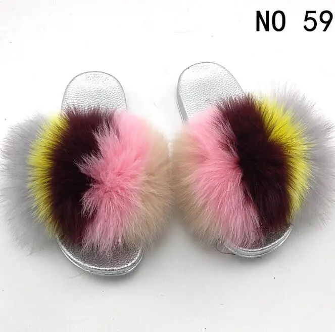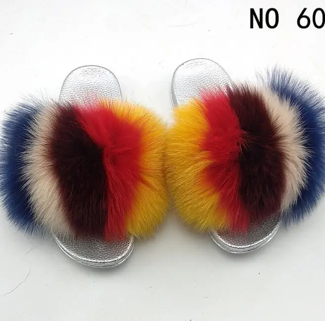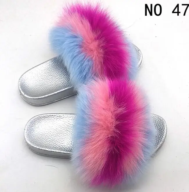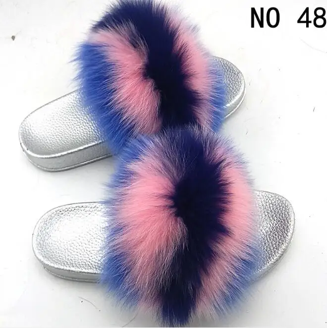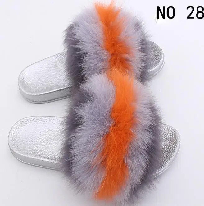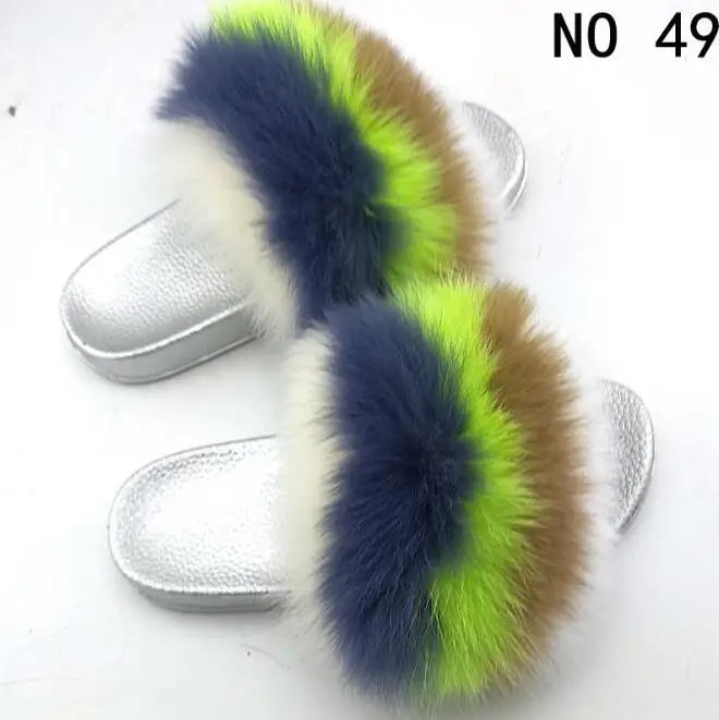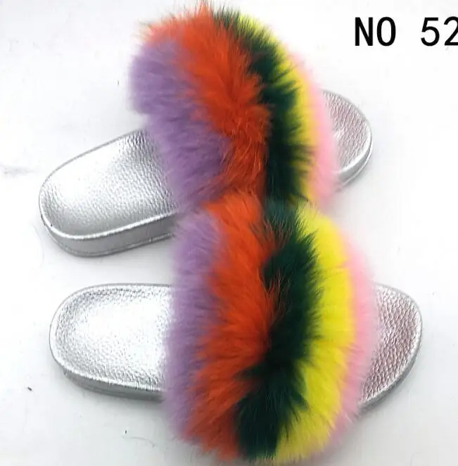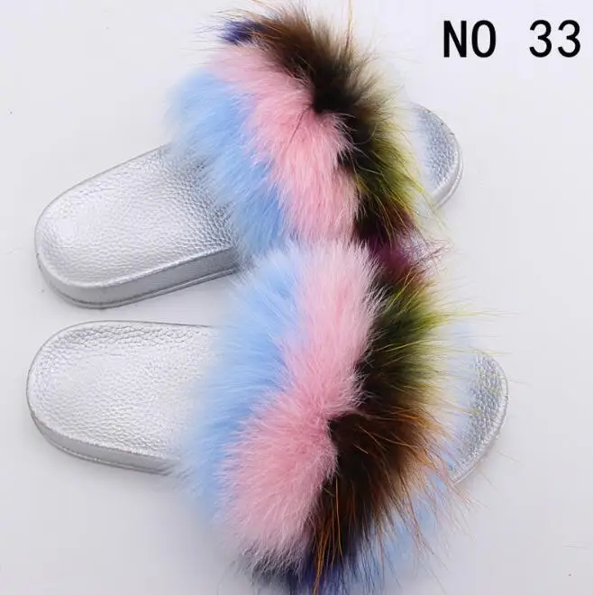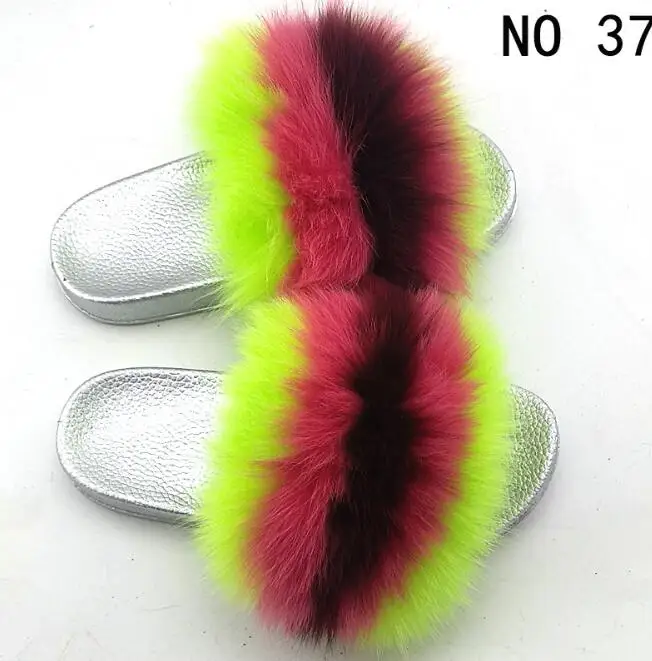 2020 Slippers Real FOX Fur Slides Indoor Flip Flops Casual Shoes Women Raccoon Fur Sandals Vogue Plush Shoes