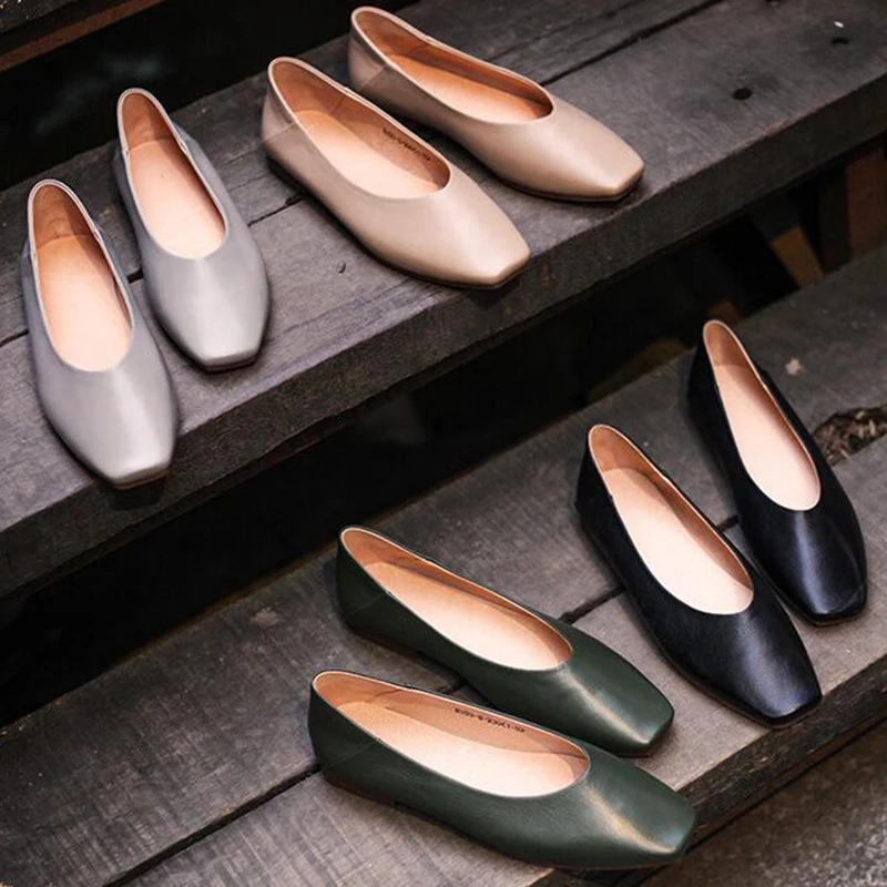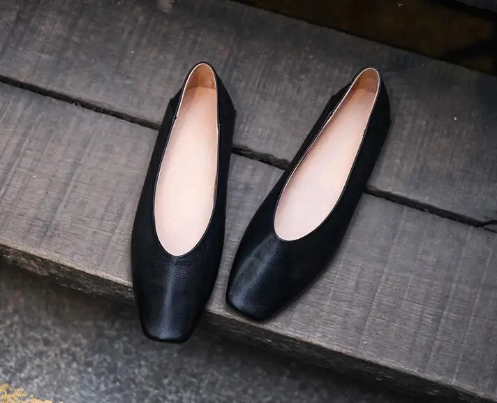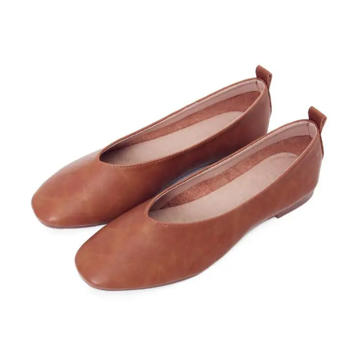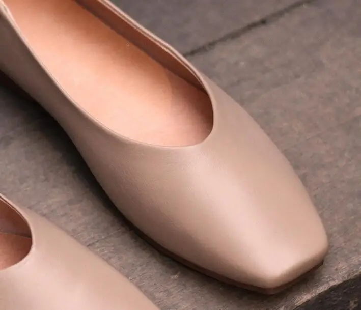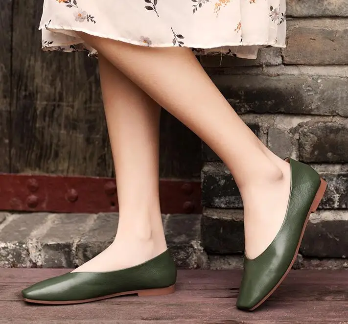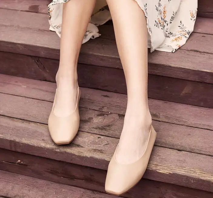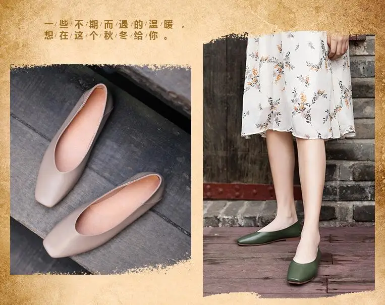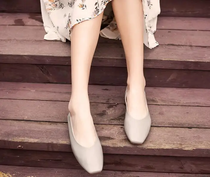 2020 Spring and Autumn Women Low-heeled Middle-aged Mother’s Single Shoes Leather New Spring And Autumn Shallow Round Head Comf
