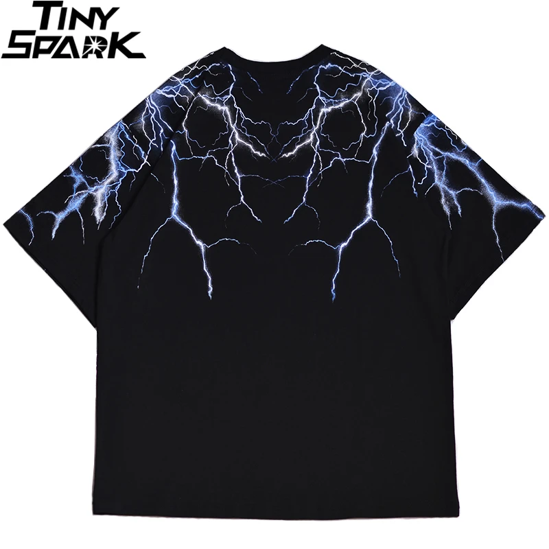 2020 Streetwear Dark Lightning T Shirt Hip Hop Men Harajuku Tshirt Short Sleeve Cotton T-Shirt Fashion Black Tops Tees HipHop